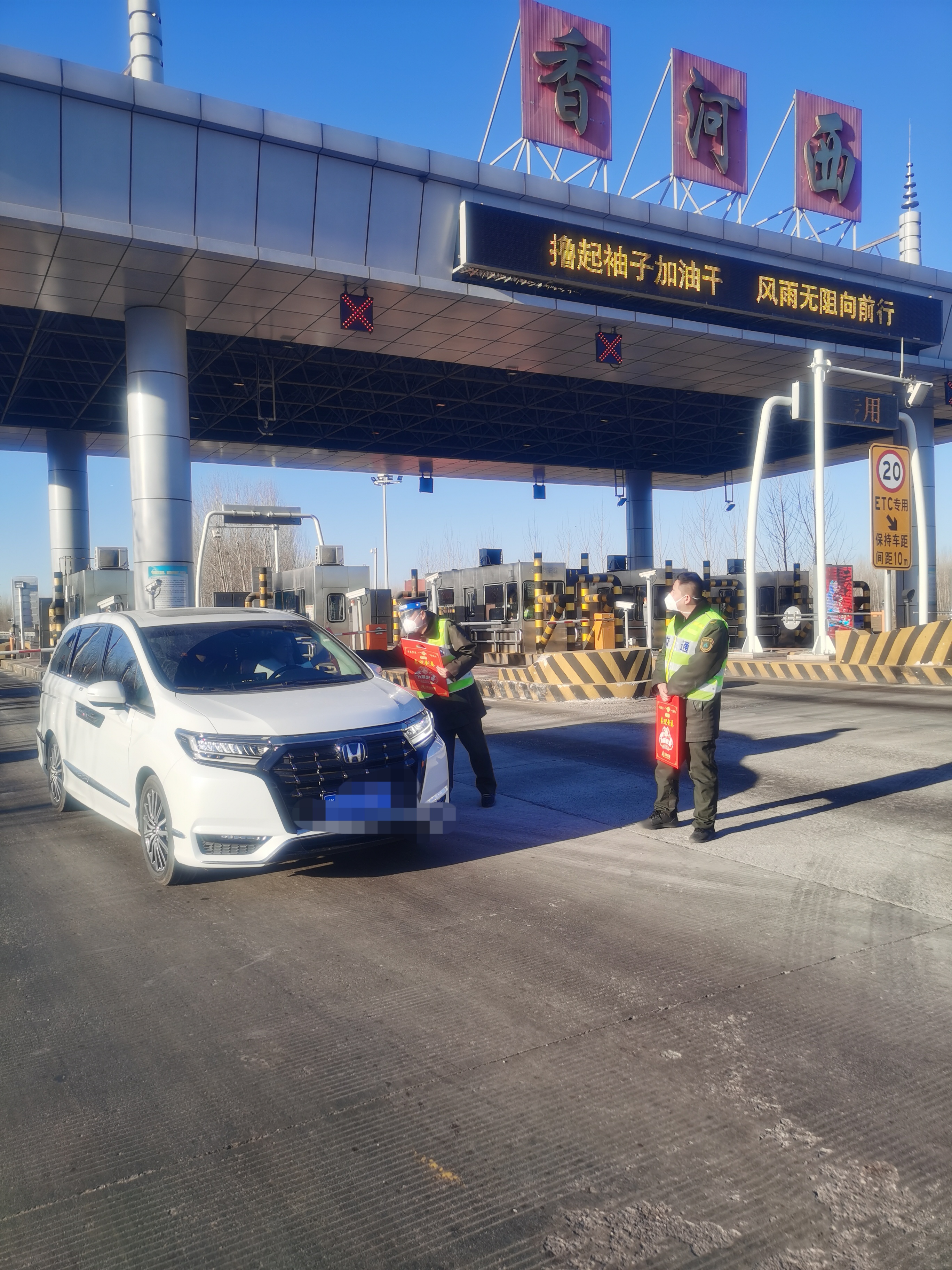 农历春节将至,为弘扬中华传统文化,营造“安全、健康、畅通、温馨”的春运通行环境,香河西收费站外广场开展“迎新春、送春联、暖人心”活动。