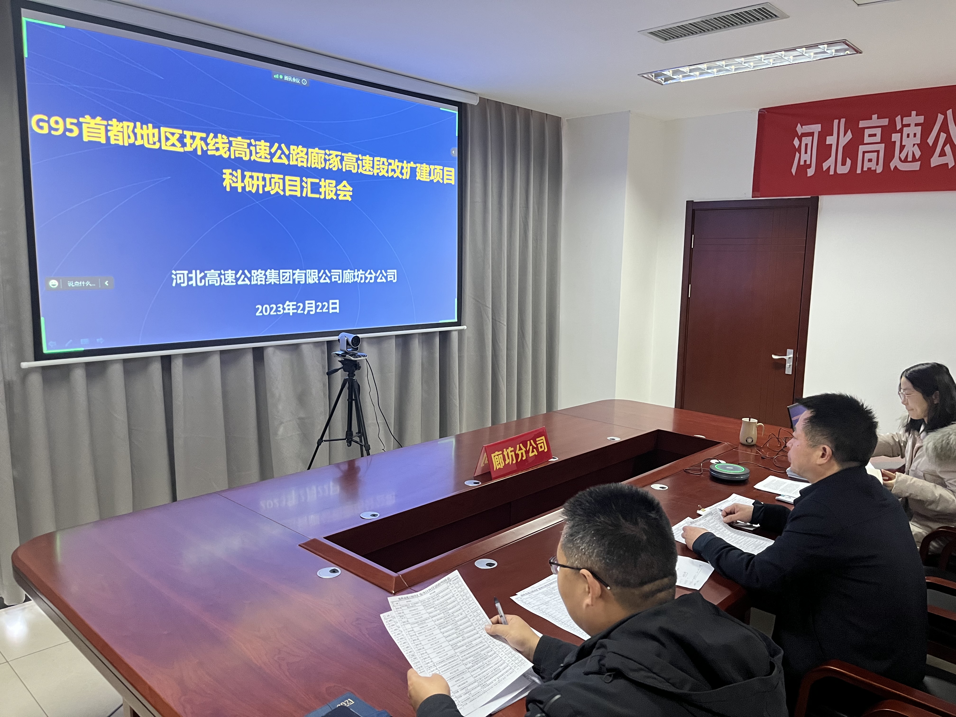 为全面提升创新能力和水平,强化研发投入统筹,推进廊涿高速段改扩建工程智慧化转型升级,2023年2月22日廊坊分公司组织召开G95首都地区环线高速公路廊涿高速段改扩建项目科研项目汇报会,向集团公司技术创新部汇报了目前收集整理科研项目情况,集团公司技术创新部主任刘爽、副主管谷建玲,廊坊分公司总经理甄伟超、事业发展部经理盖晖晖,咨询公司总经理赵素锋、副总经理贾钢、咨询服务部负责人代忠及相关人员参加会议。
