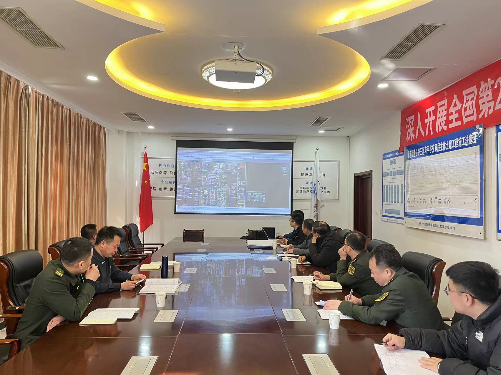 2023年2月28日,为进一步做好密涿高速公路新增白庄子互通收费站工程建设,打造品质工程,优化使用功能,廊坊分公司组织召开新增白庄子互通收费站房建工程使用优化布局协调会。分公司总经理甄伟超、三河东收费站长王海涛、燕郊西收费站长王皓琳、齐心庄收费站长马国光、建设指挥部主任乔中美、项目工程师陈远鹏、设计代表、驻地监理,施工项目经理、技术负责人等有关人员参加会议。