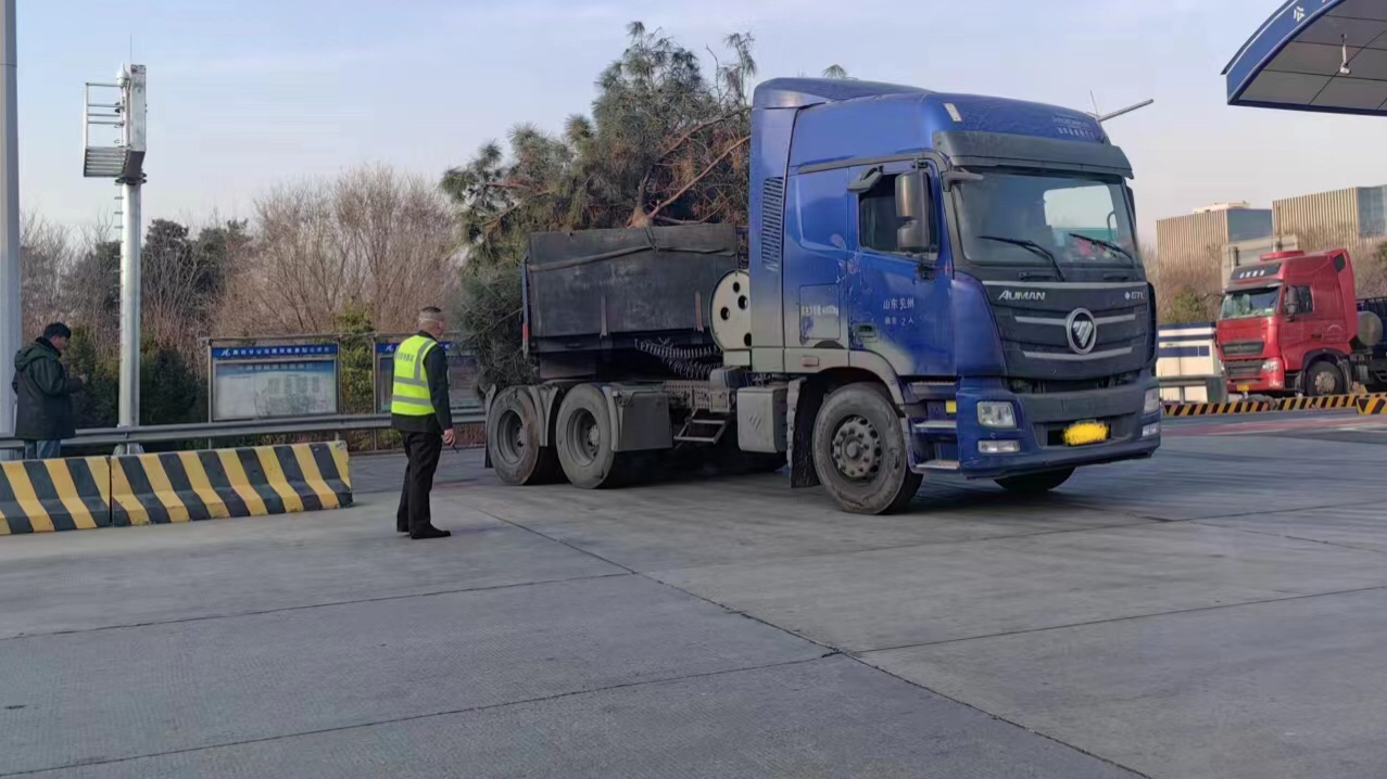 2023年3月20日,在繁忙的通行高峰时段,一辆载有未捆绑覆盖树木的六轴黄牌货车从收费站入口车道驶入。发卡员第一时间注意到该车载货的超限情况,并通知当班班长,当班班长立即对该司机进行劝返疏导,司机表示自己准备驾车返回山东,不知道除高速以外的路线,当班班长了解以上情况之后,根据司机的目的地,通过导航给司机规划了一条可行的路线,司机对班长的热心帮助表示了感谢。