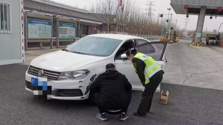 香河西收费站备有汽车充气泵,在收费班长的耐心帮助下终于给车胎充好了气,司机师傅向收费班长表达感谢后驶离了收费站。