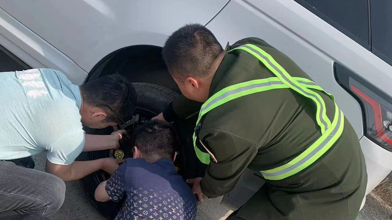 2023年4月25日下午2点半左右,一辆白色小车驶入三河东出口105车道。司机打开车窗后着急地问:“你们这儿有扳手吗?我车的轮胎出问题了。”收费员立即将情况报告给当班班长。