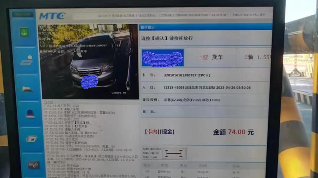 4月29日7时52分,正值“五一”劳动节免费。一辆车牌号为冀F的小型货车进入收费广场后,直奔小型客车免费车道,没有驶入人工收费车道,当班收费员发现后,立即伸手示意其车停下。被拦截货车司机则问到:“现在不是免费呢吗?”收费员向其解释到:“按照规定,五一免费期间,只有七座以下(含七座)的小型客车才能享受免费政策,您的车为货车,不符合免费政策,需要正常缴费”。司机听后表示理解,并正常缴费了74元。 |