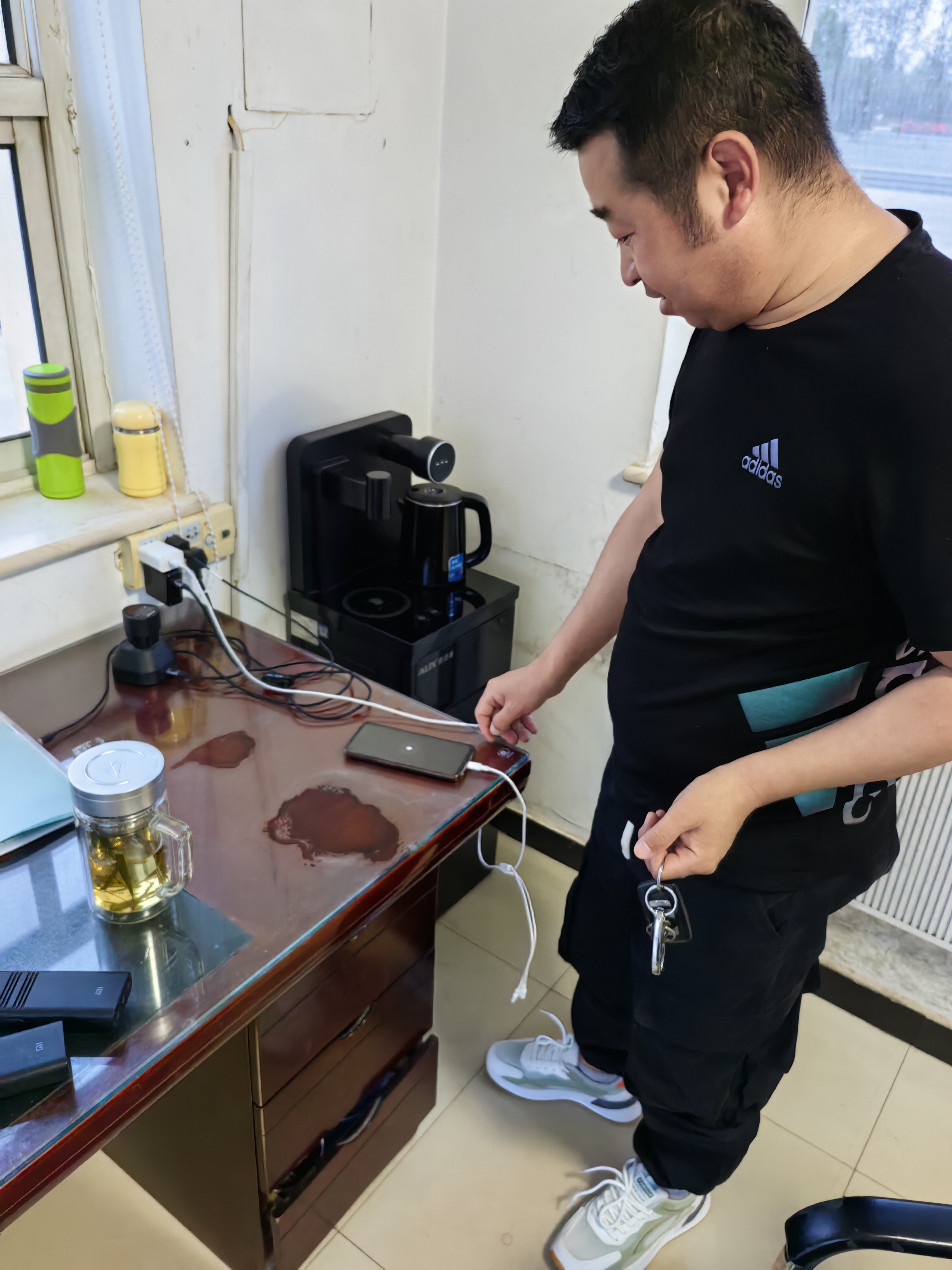 郭通赶到现场,将车辆引导出车道,让后续排队车辆有序通行。随后将司机带到门卫室,自便民服务台取来多功能手机充电器,为其手机充电。该司机表示:“我从来没遇见过这情况,还真有点蒙,你们解决问题真是直接又简单,我还担心走不了呢,这手机有电就能缴费了,你们的服务太好了,非常感谢。”几分钟后司机用手机缴纳了通行费,顺利的驶离了收费站。