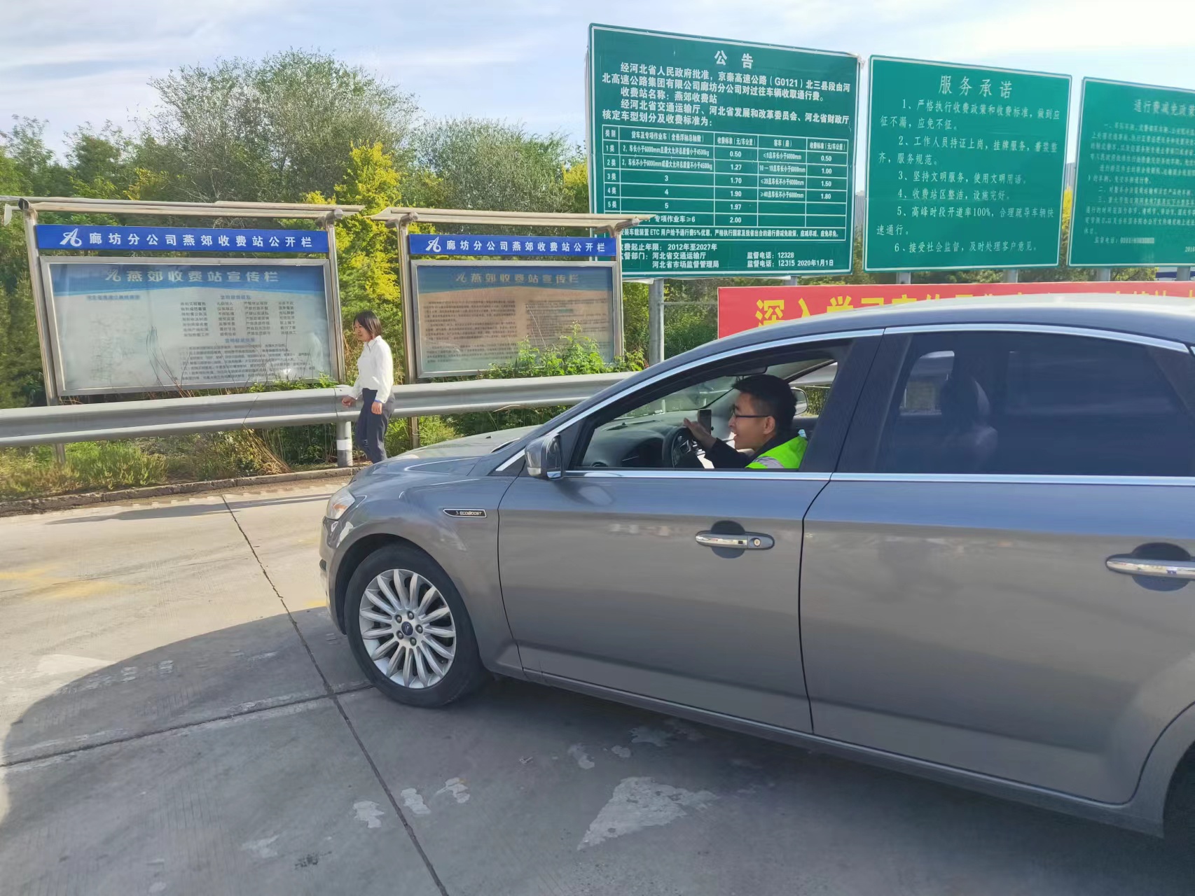 5月14日早上8点,正值燕郊收费站车流早高峰,当班班长王旭在入口巡岗期间,发现一辆灰色轿车被拦截在了ETC专道,费显屏幕显示无标签。此时,由于车流量大,该车身后已经排满了等待车辆,后面充斥着鸣笛声、催促声。班长见状,立即上前“解围”。只见一名20多岁左右的女司机,满脸歉意地说道:“对不起啊,我没有ETC,走错车道了,并且这是朋友的车,不太会开,现在挂不上挡,车动不了了。”班长立即化身成“代驾”,帮该司机将车辆驶出车道,同时还边操作边给司机讲解挂挡和道路行车安全的方法技巧,希望她今后再遇到类似情况时,不会再出现如今这种窘迫的局面,女司机连连道谢。