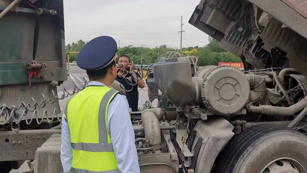 5月22日19时,三河南收费站入口广场一辆六轴半挂货车因超载被劝返,车辆在掉头过程中却突发故障无法移动,入口收费员立即通过对讲通知班长。因该车横跨在入口收费广场,为避免出现安全隐患和入口拥堵,当班班长迅速组织班组人员在入口广场对车辆进行疏导,并与司机在维修人员的电话指导下,共同排查故障原因。经过一系列检查后发现系挂挡传动轴故障,需要两人配合才能挂挡移动。在收费班长和司机十几分钟的紧密配合下,车辆终于成功挂挡正常启动。班长不忘提醒司机故障此时只是暂时排除,还需尽快将车辆开到修理厂进行维修。司机对三河南收费站的工作人员不怕吃苦、乐于助人的品质给予高度评价。
