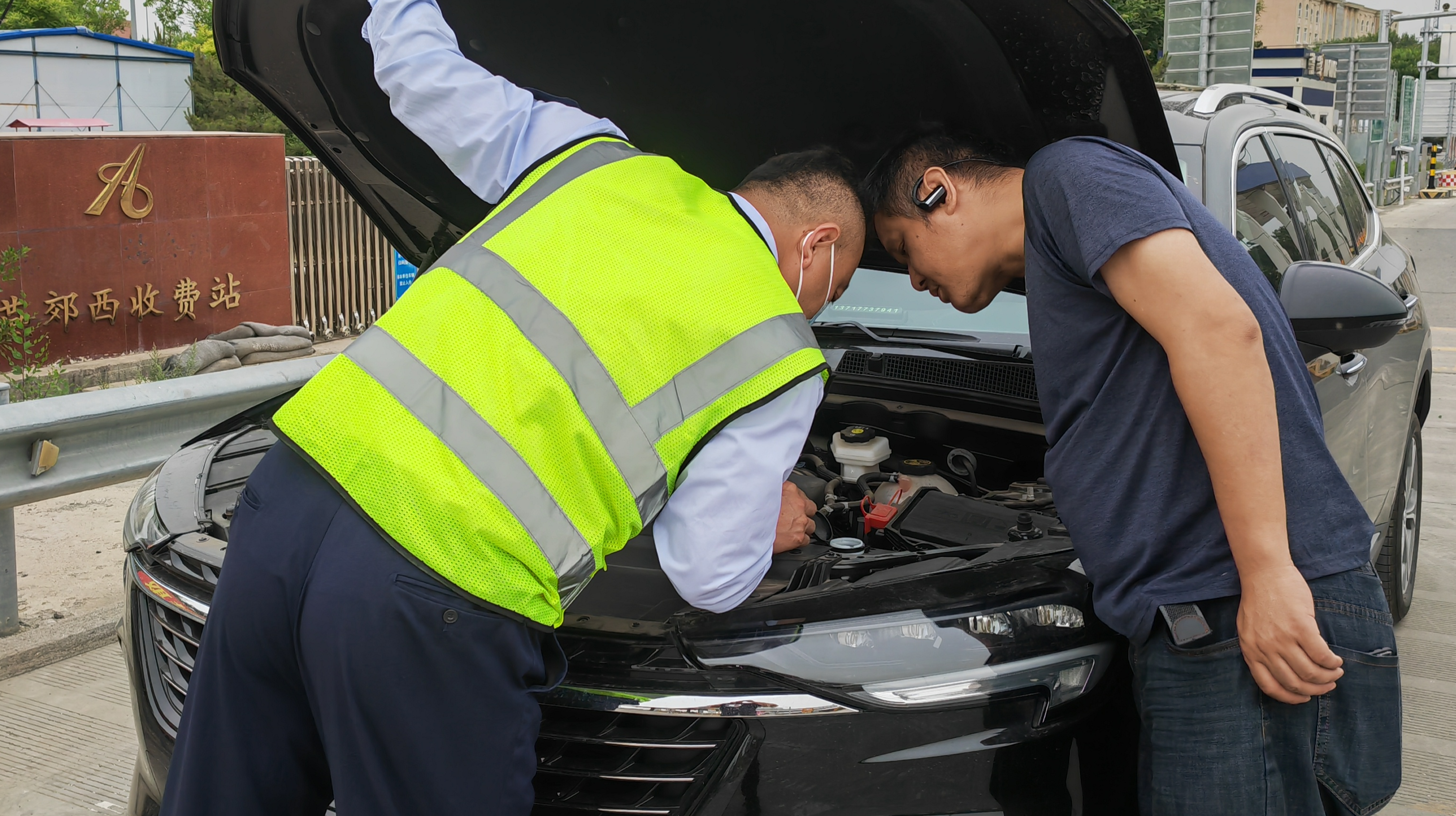 2023年5月25日早高峰时,燕郊西站收费员翟瑞东正在发卡作业时,发现一辆小轿车打着双闪顺着边道停了下来,立即用对讲向班长赵超超汇报。班长立即上前查看情况,指引车辆停靠至收费站大门口空地,并第一时间放置好反光桶。班长与司乘进行了沟通交流,了解到车辆故障灯一直亮着并发出声响,司机不敢再继续行驶,但因为有紧急的事需要办理,造成司机焦急不安。班长首先安抚了司机的情绪,并帮助司机对车辆进行了检查,凭借多年与车辆“打交道”的经验判定此车是缺少机油了,经过查看确是如此,并帮司机联系了最近的修理厂进行维修,解决了司乘的燃眉之急,司机连连感谢收费人员及时伸手相助,对收费站的热心服务和高效工作给予了高度评价。