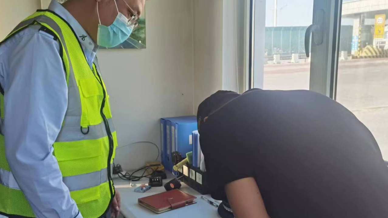 6月6日17时45分,一位司乘人员跑至燕郊西收费站向工作人员寻求帮助,此时天气炎热,司乘气喘吁吁,见状,收费四班班长杨超同志热心将其引领至便民服务室了解情况。