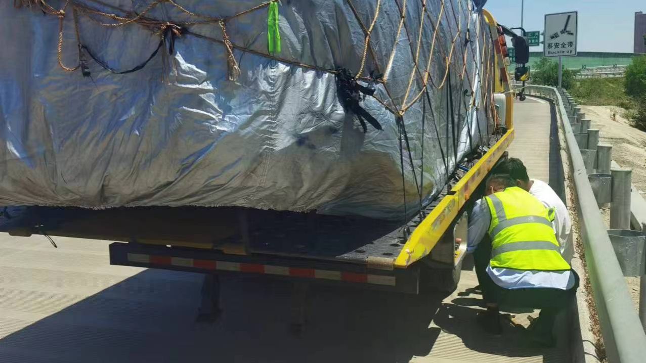 经探查,该拖车后侧轮胎扎进一个螺丝,好在发现及时,扎的并不深。了解情况后,司乘及杨超同志迅速达成共识,一人手扶轮胎,递交工具,一人小心拖曳螺丝,二者配合默契,用时五分钟将螺丝取出,最后用水测试轮胎没有跑气情况,保障车辆行驶安全。车辆恢复正常后,司乘在多番感谢后驶进高速。