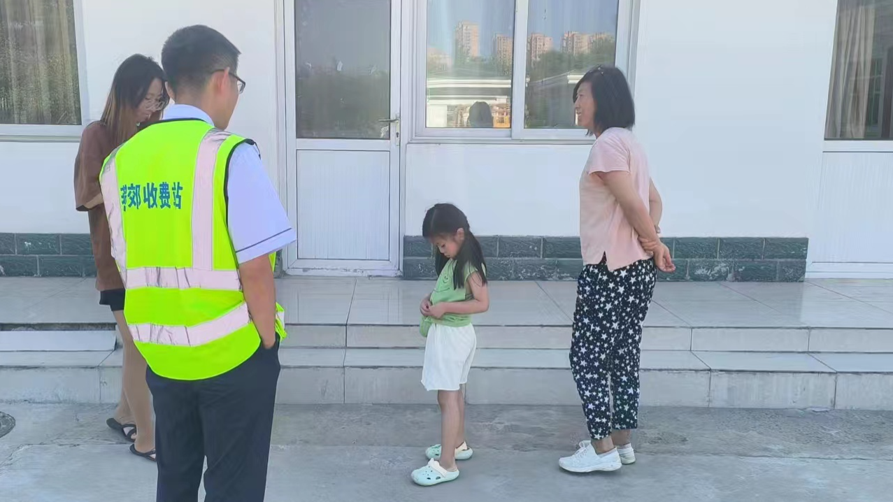 6月22日正值端午节假期,天气炎热,气温达到了40摄氏度。中午12时30分,一辆黑色轿车突然停在收费广场旁,车门打开,一名5岁左右的小女孩踉踉跄跄地走出来,蹲在地上呕吐,因为不适开始哇哇大哭,孩子妈妈则蹲在一旁安抚孩子。当班班长王旭见此情形,快步走上前了解情况,原来一家人准备外出旅游,因为天气炎热,孩子有点中暑和晕车。此时班长提议让这一家人到便民服务室休息一下,里面有温水、空调,床铺等,院里还有卫生间,可以让孩子休息一下。经过短暂的休息调整,小朋友很快就恢复了精神,一家人高兴的踏上了旅途。