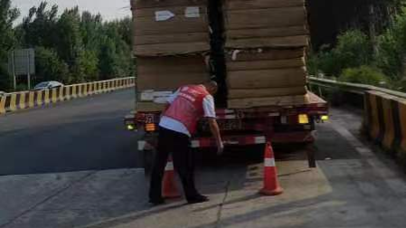 7月14日15点30分,一辆车牌号为冀RXXXXX的黄牌货车在驶入收费站入口计重台时突然爆胎,收费员发现后立即上报收费班长,但是由于该车拉载很多货物且在计重台无法停车,因此收费员当机立断让班长记下车牌号并提前发出通行卡,随后引导该车通过车道停驶在入口安全地带。