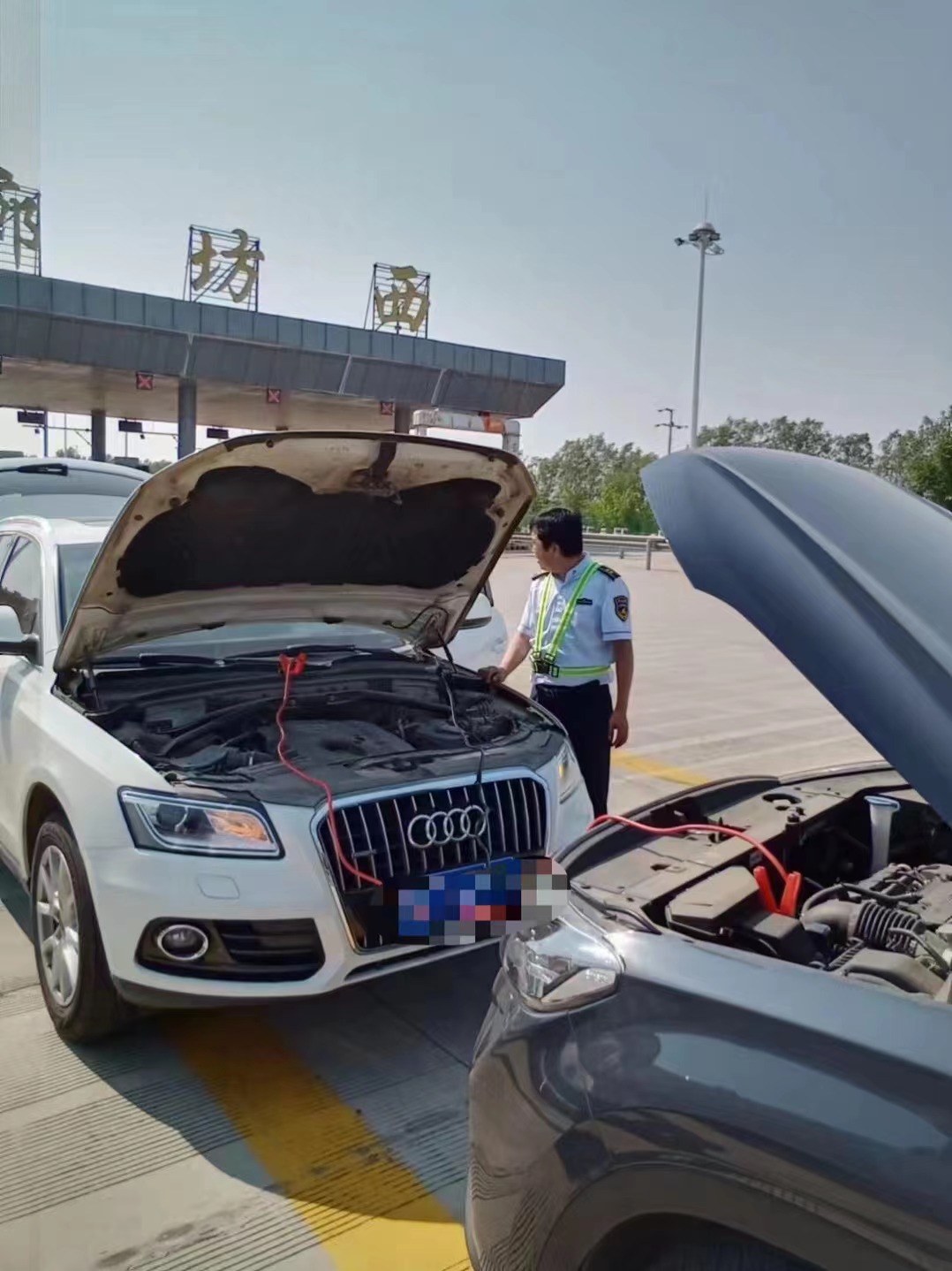 7月19日下午15时,一辆小轿车在廊坊西收费站105车道等待缴费时突然熄火。收费员吴迪发现后及时通知班长王锁。