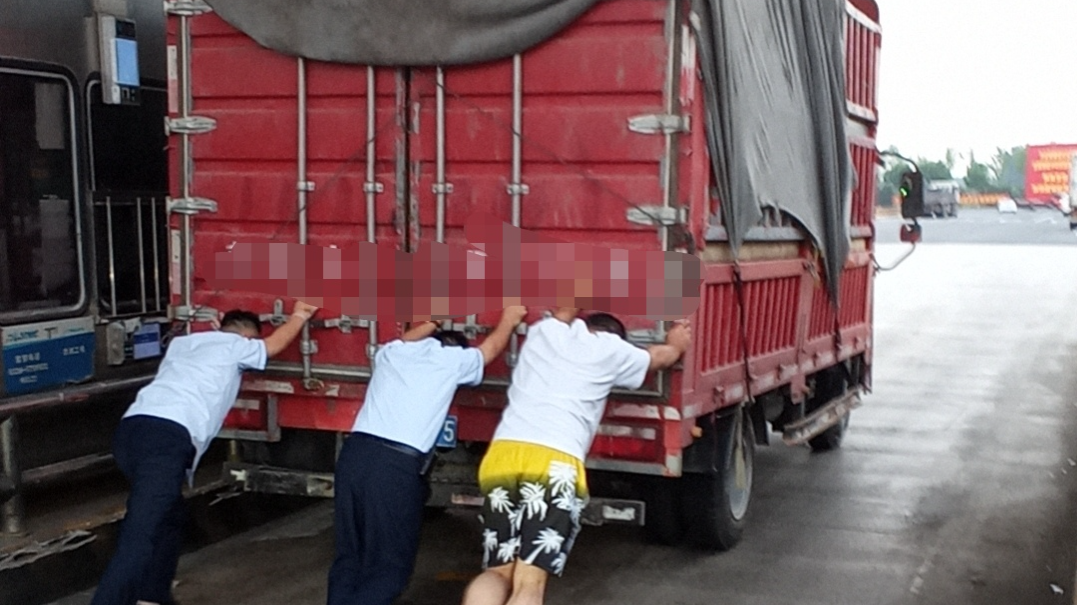 7月20日下午6点30分左右,一辆货车正常驶入香河西收费车道进行缴费,在缴完费后车辆突然熄火停在了车道上,迟迟发动不了。当班收费员尚明仁见状赶紧拿对讲喊来了正在用餐的班长袁文博。