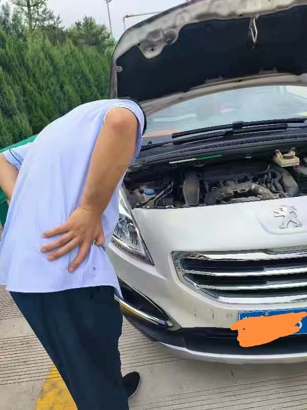 7月29日中午12点30分左右,一辆白色的小型客车停靠在了固安东收费站下道口收费广场上。疏导员魏俊杰发现此车辆后迅速上前询问情况。
