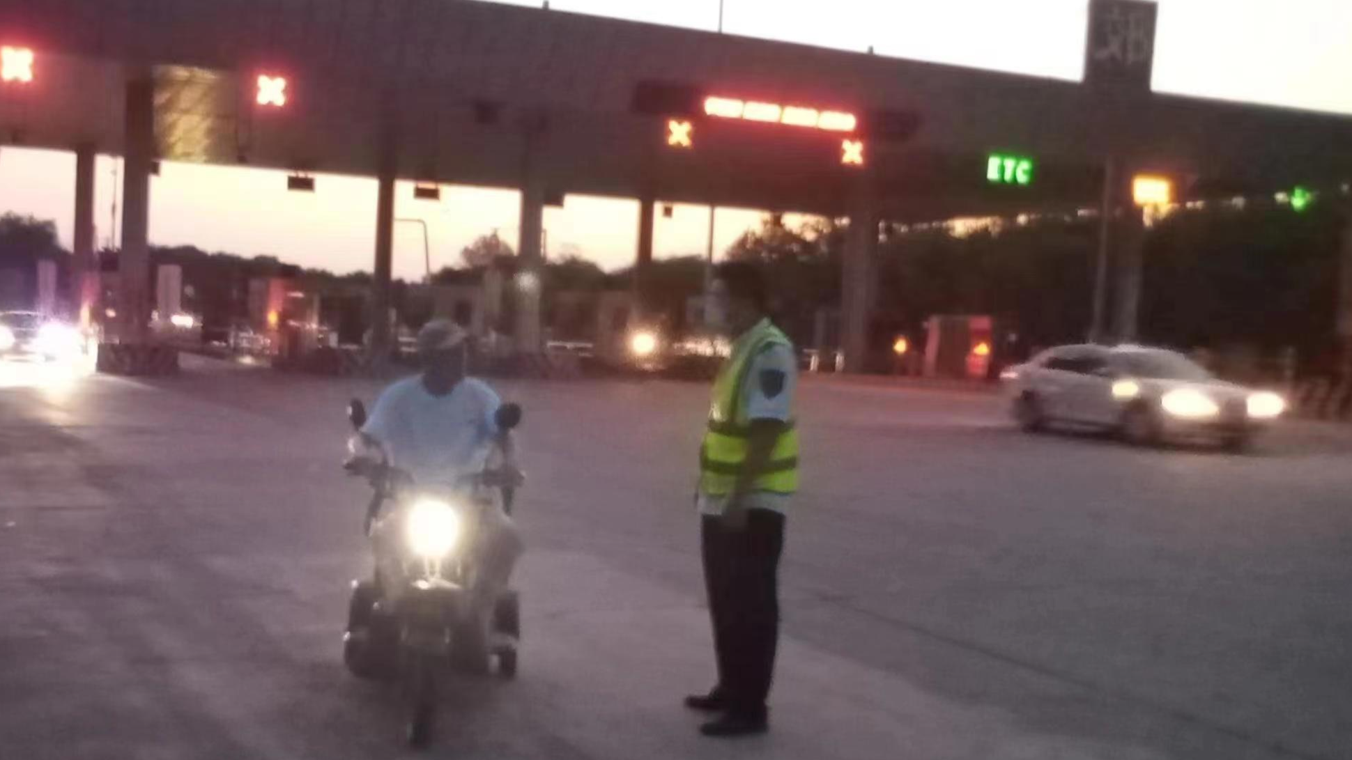 经了解,因天色已晚,老人找不到去往北京市通州区的检查站才误上高速收费站。随后,班长仔细地向老人说明了现在的位置并指引去潮白大街检查站的路线,老人表示感谢后安全驶离收费站。