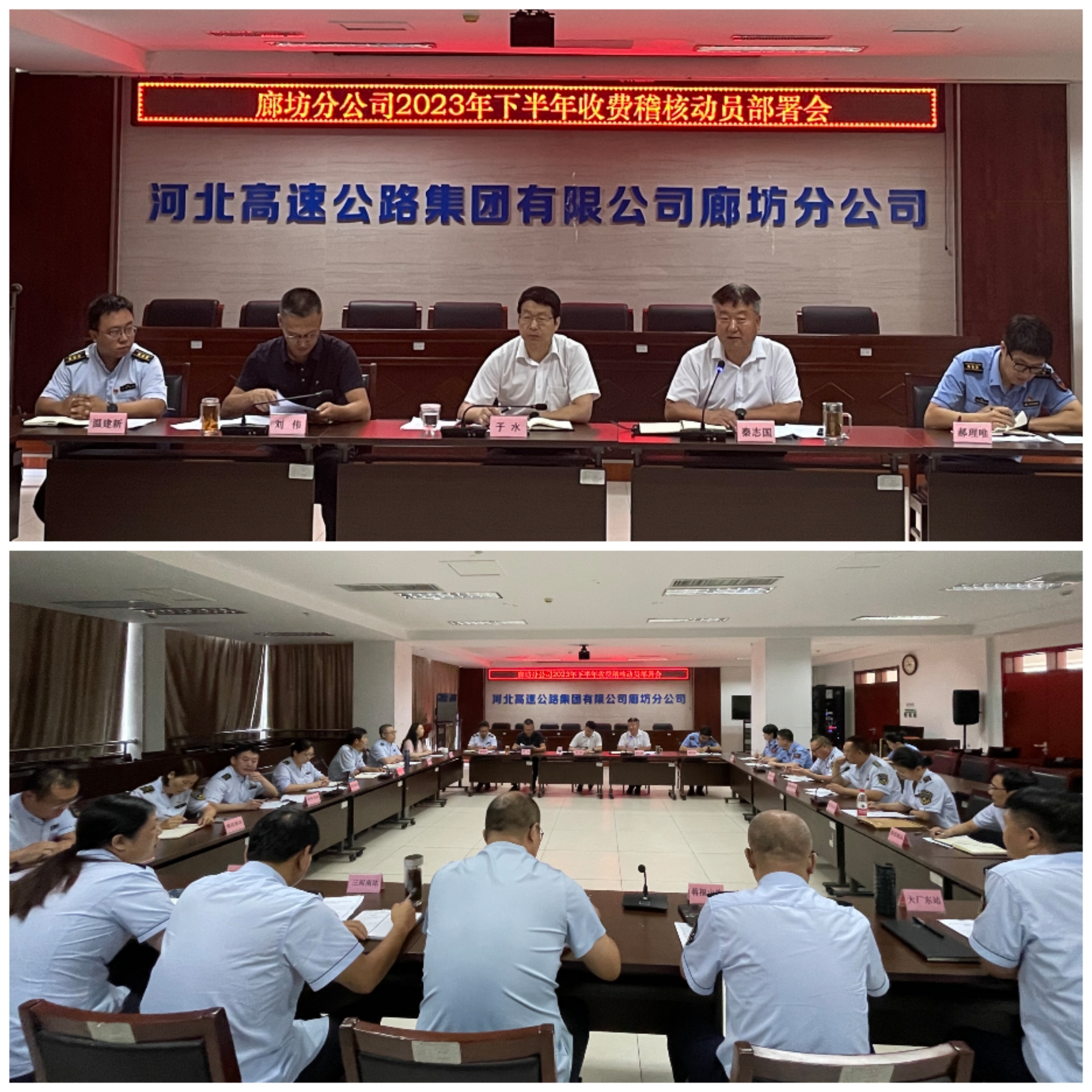 8月2日,廊坊分公司召开2023年下半年收费稽核工作动员部署会。会议由副总经理秦志国主持,分公司党委副书记、总经理于水出席会议并讲话。收费管理部、稽核管理中心、各收费站主要负责人、收费监控负责人、业务部室相关人员参加会议。