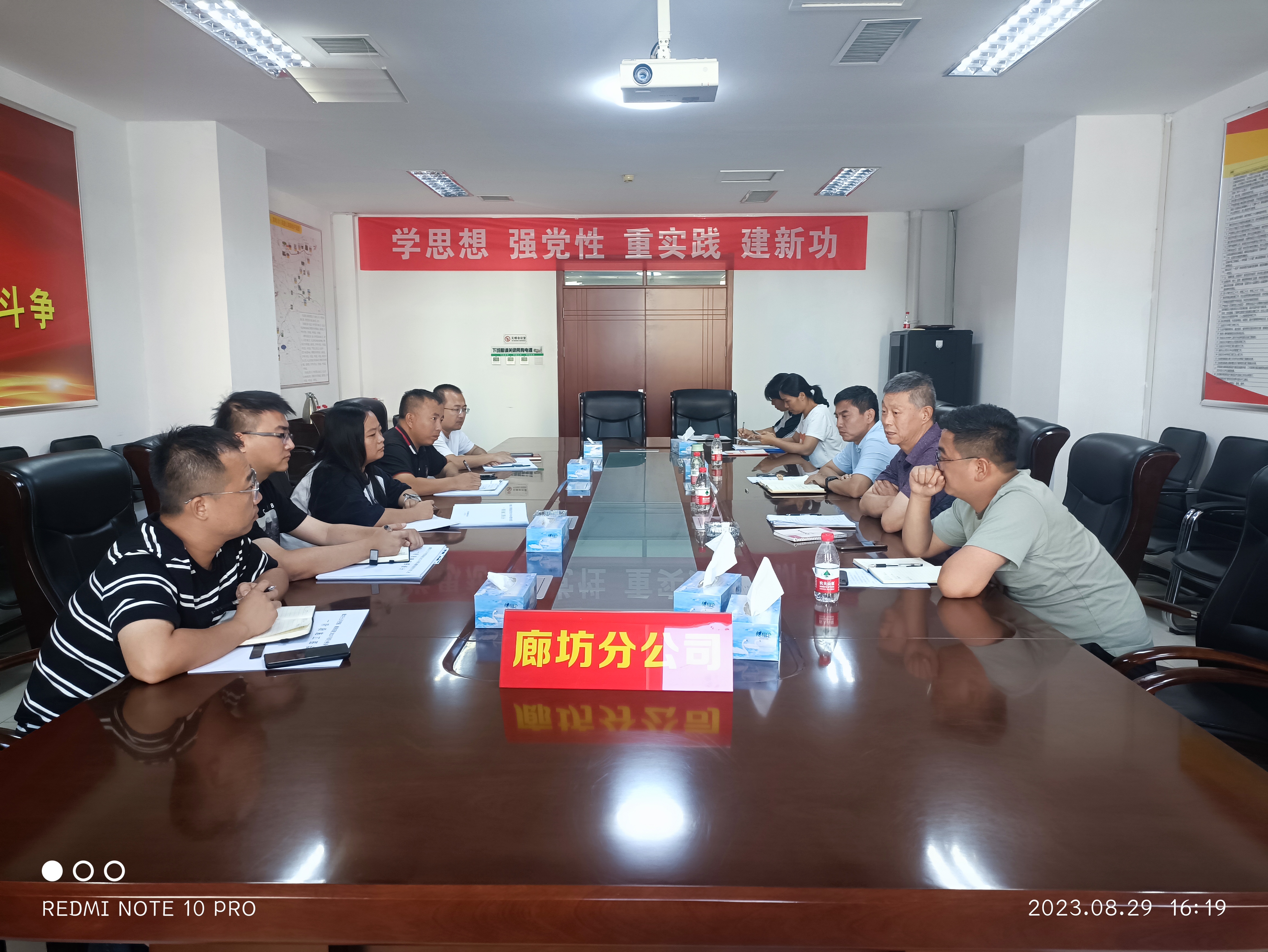 8月29日,廊坊分公司召开日常养护工作调度会,廊坊分公司副总经理陈书民,养护管理部经理刘天平、副经理刘光、养护管理部工程师及各养护班组负责人参加本次会议。