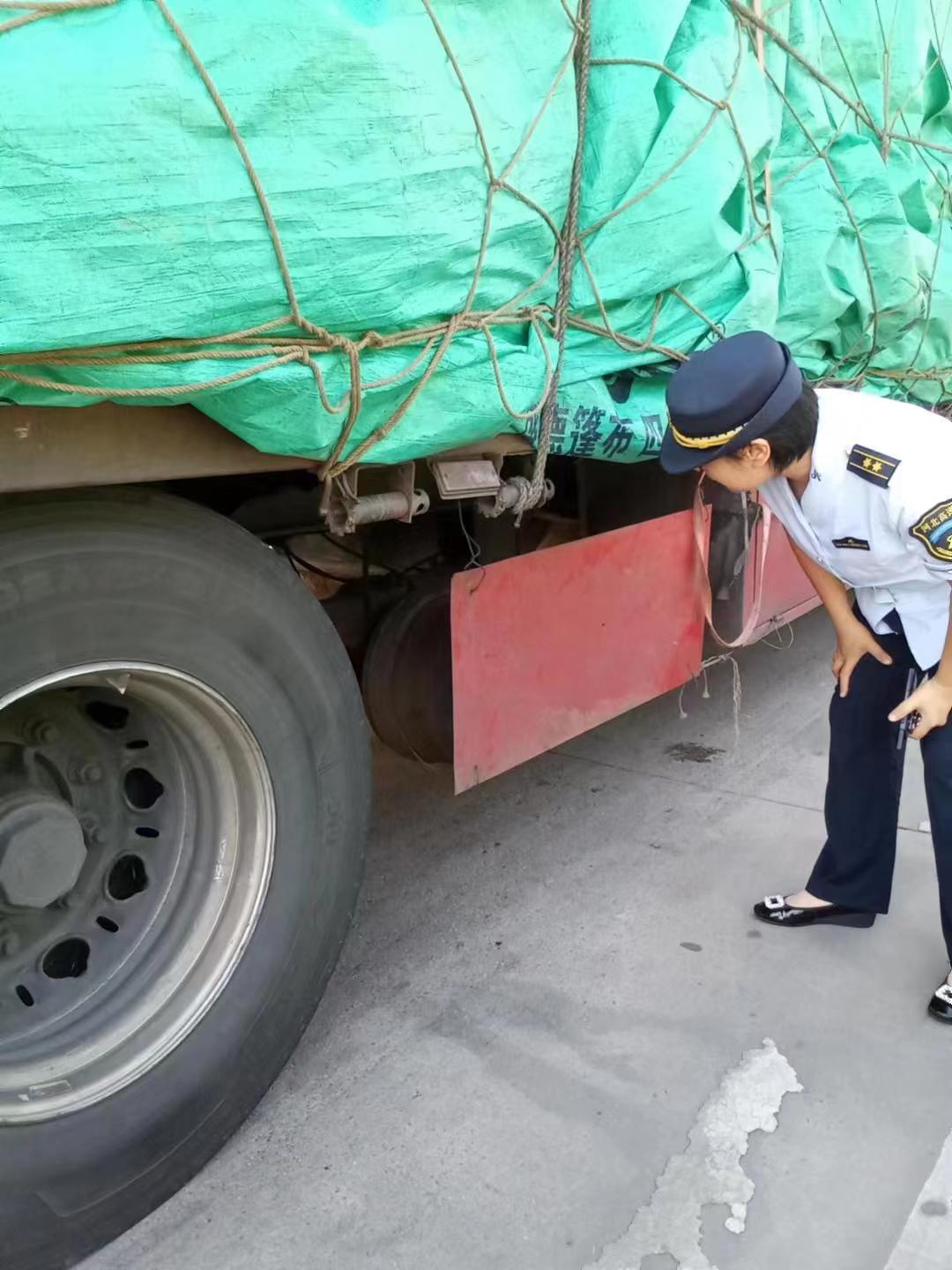 9月21日,一辆车牌为冀A牌照的六轴货车在固安东收费站收费五道缴费。司机称车辆为五轴货车,这引起了收费员张曼的注意。通过车辆长度及车头侧门喷注的漆字显示车辆荷载重量为49吨,收费员依照经验判断该车应为六轴货车。