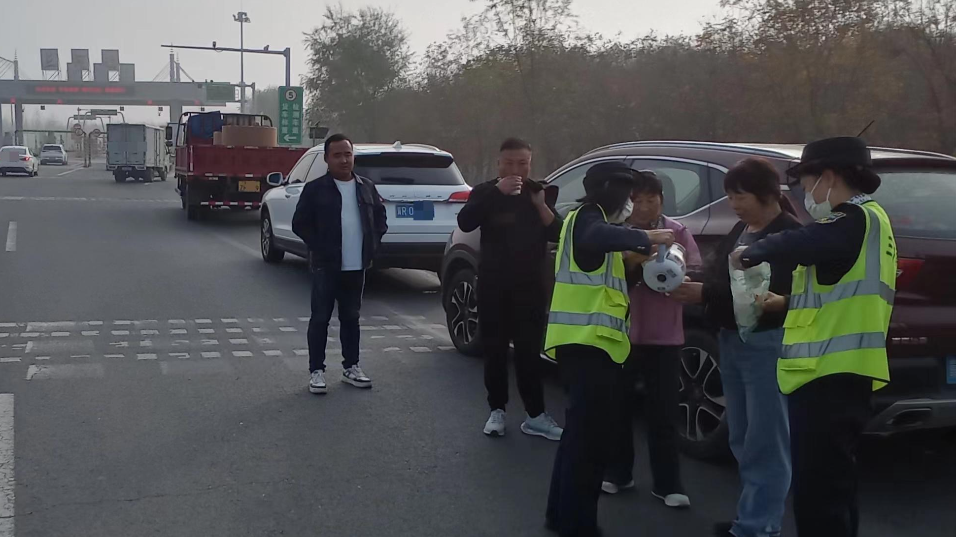 “您好,我们是三河南收费站的工作人员,天太冷了喝杯热水暖暖身子吧!”司机接过热水向收费员连连道谢。在场的司乘人员纷纷竖起大拇指。