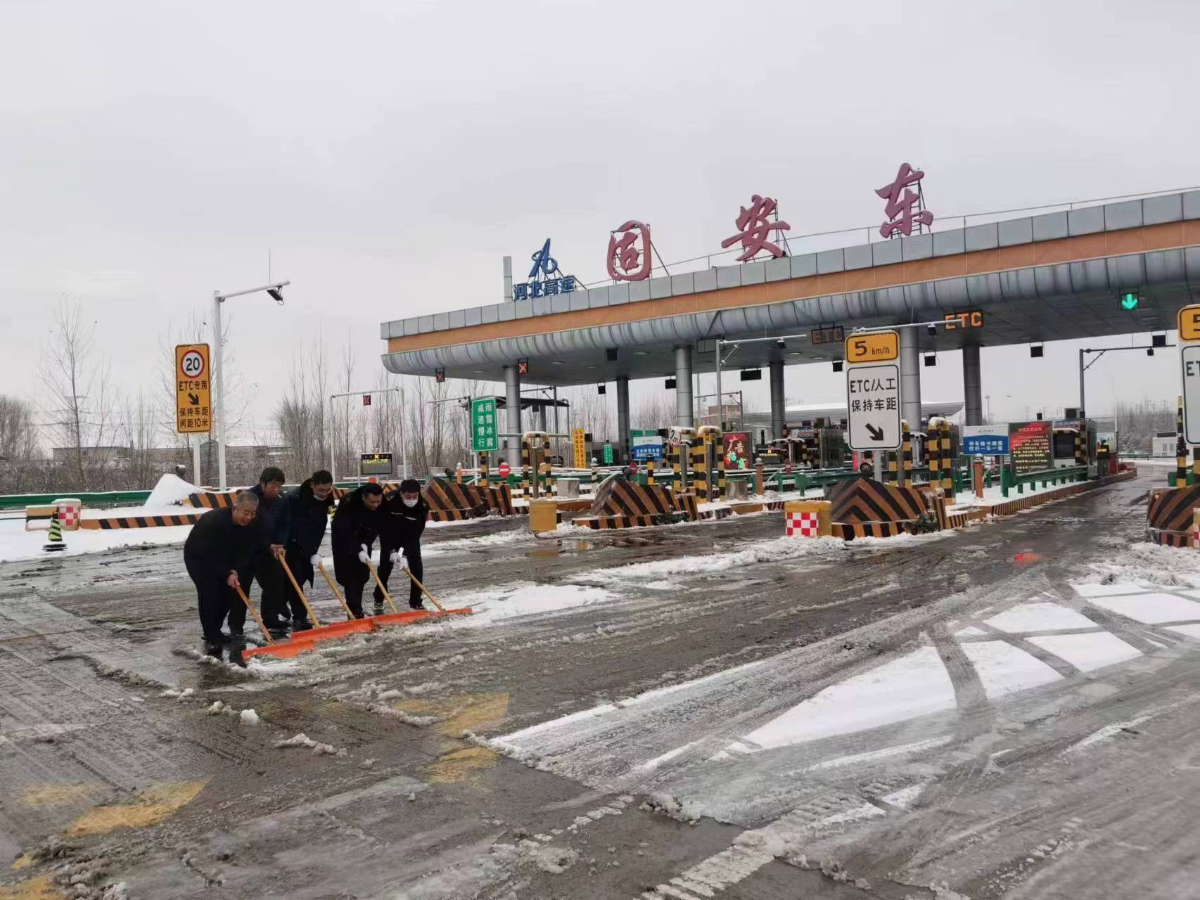 经过全体职工两个小时的持续奋战,站区主要地段积雪全部清除,为过往车辆的安全通行提供了有力保障。接下来,固安东收费站将持续关注天气变化,加强与有关单位的沟通协作,继续做好恶劣天气的应对工作。