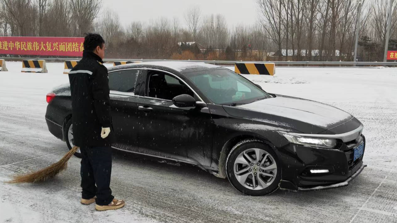 2023年12月11日,廊坊地区迎来大范围降雪,三河东收费站入口车道关闭,一辆小轿车缓缓停在了路边,正值在岗人员正在清除积雪,发现后立刻上前询问其是否需要帮助。