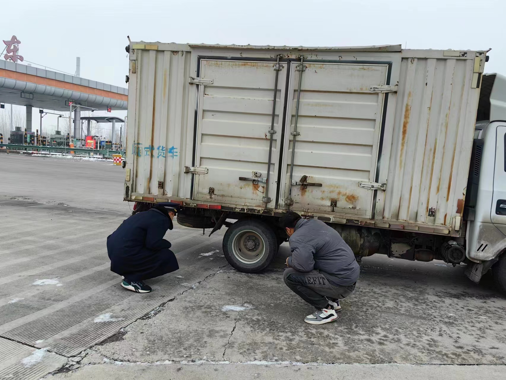 12月12日上午11点半左右,固安东收费站广场停下了一辆白色小型货车,正在进行安全巡查的副站长耿飞飞和疏导员邸士伟发现此情况后立刻上前进行查看。还没到车辆跟前就闻见了刺鼻的味道。司机焦急的向耿飞飞和邸士伟寻求帮助:“两位同志,快帮帮忙,我的车辆下边已经开始自燃了,我需要灭火器。”耿飞飞立刻安排邸士伟迅速取来灭火器对车辆底部起火部位进行灭火,火势很快就得到了控制。后续邸士伟又和司机一块查看了车辆故障所在,并帮忙联系了附近的修理厂前来修理车辆。