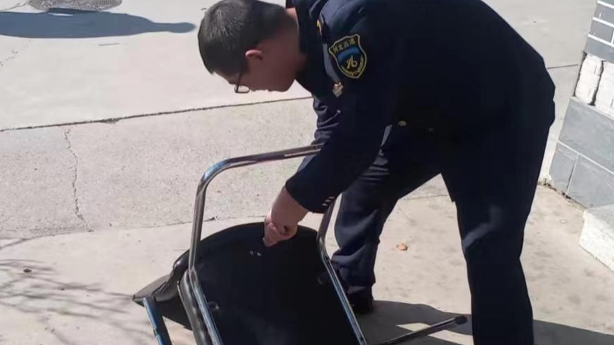 收费员翻开其中一把座椅,发现只剩一颗螺丝在连接,其余螺丝已经消失不见。收费员立即着手寻找合适的螺丝,经过一番修整,座椅被修复完好,十分牢固。