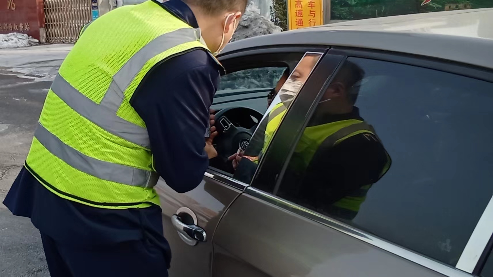 此时一辆灰色轿车说我是去北京的请问哪里有办进京证的,由于广场车辆较多,班长让其他同事继续疏导车辆,然后将司机指挥到安全地方了解情况,司机称导航导了两圈都没有找到,自己是外地人对这边路况不太熟悉,因临时有事需进京,车辆外地牌照无法通行北京路段。通过跟司机沟通了解到目的地,让司机拿出手机帮他输入好能办理进京证的地方让其导航过去即可,并告知司机下载北京交警,可以在手机上直接办理进京证。司机微笑地说:“河北高速优质的服务和热情的工作人员为我们的出行提供了很大的帮助,非常感谢!”