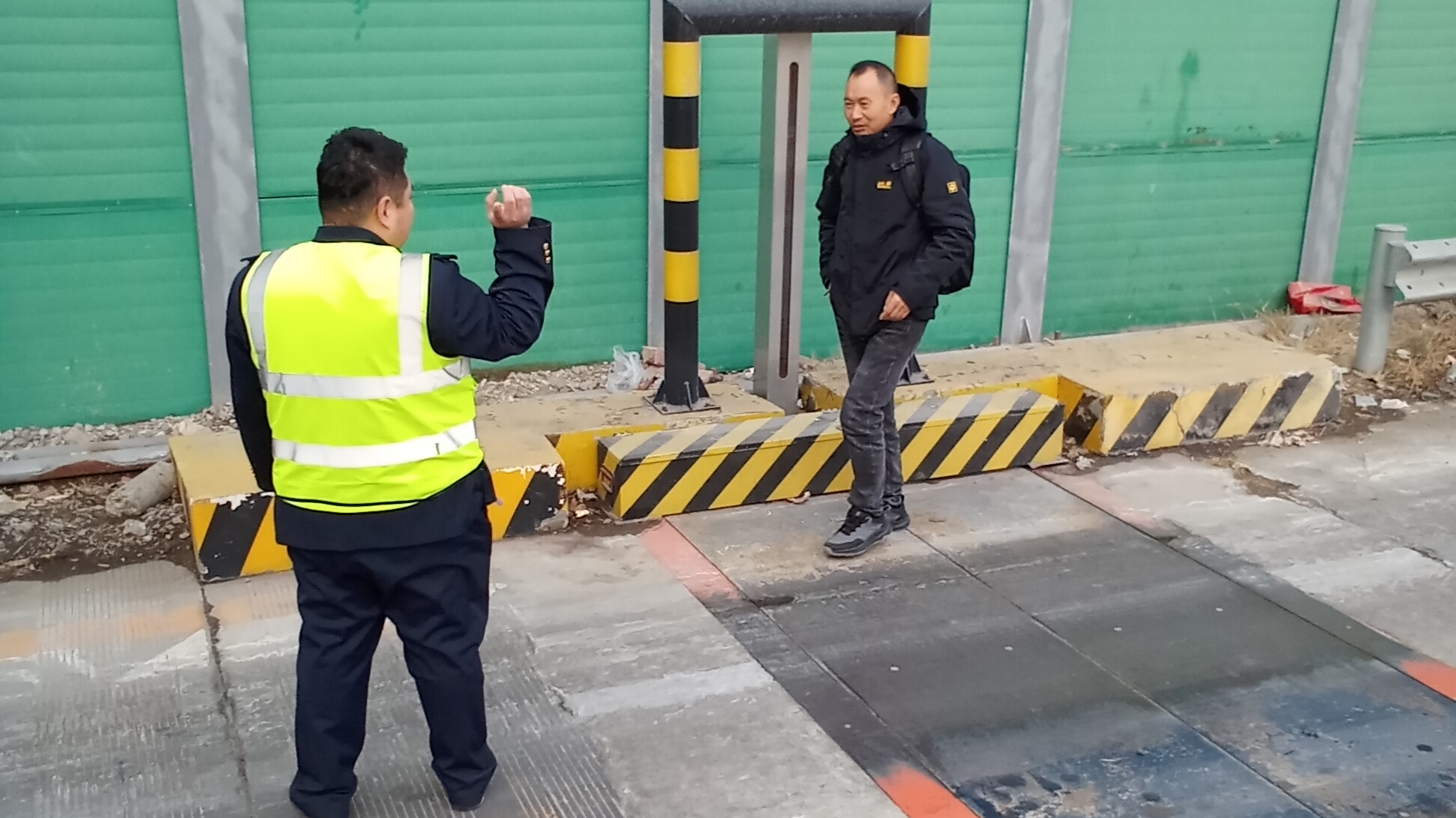 正在打扫卫生的收费员翟瑞东快步跑上前将行人拦下,告诉行人不允许通行高速,容易发生危险,随后将行人带出车道安全位置,并向其了解有什么需要帮忙,经了解行人要去迎宾路长城重机找工作,称自己不是本地人,导航显示在高速口下车即到,收费员解释说您下错站了,应该从燕郊收费站下车,同时又向其指引了最近的公交站牌,行人连声道谢。