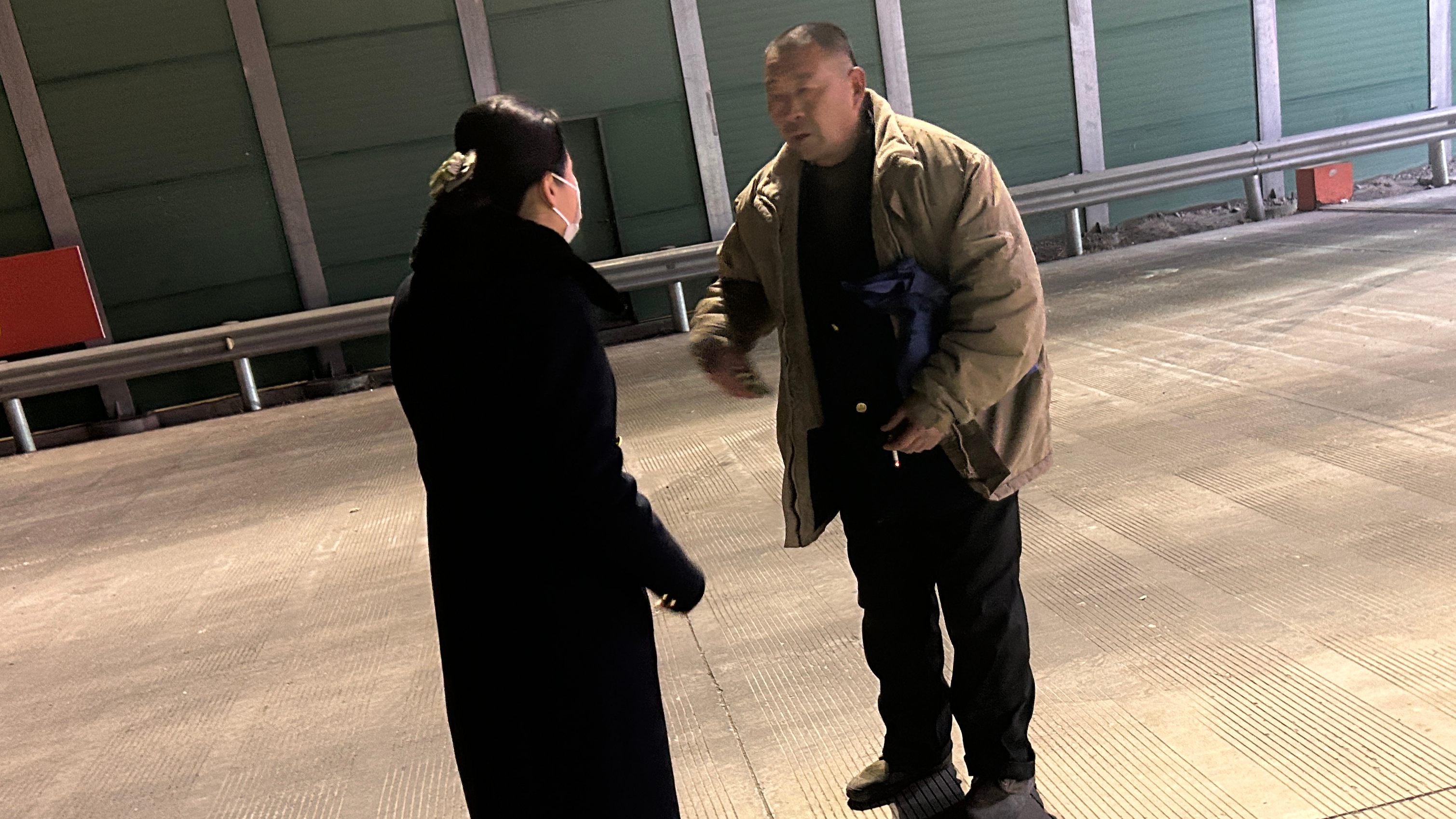 2024年1月24日凌晨,一位司机师傅在燕郊西收费站出口广场不断徘徊,班长崔冠英连忙上前查看。