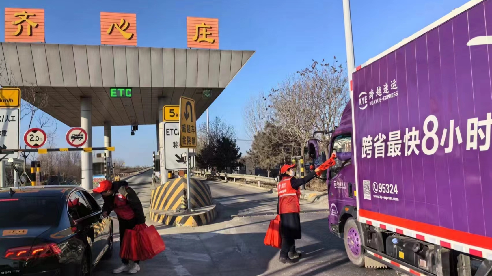 春节将至,年味渐浓,为进一步弘扬中华民族优秀文化传统,营造欢乐、喜庆、温馨、和谐的节日气氛,2月7日上午,齐心庄收费站联合三河西收费站组织开展了“新春送福 服务暖心”志愿服务活动,向周边企业和过往司乘送上河北高速集团“新春大礼包”和春节祝福。