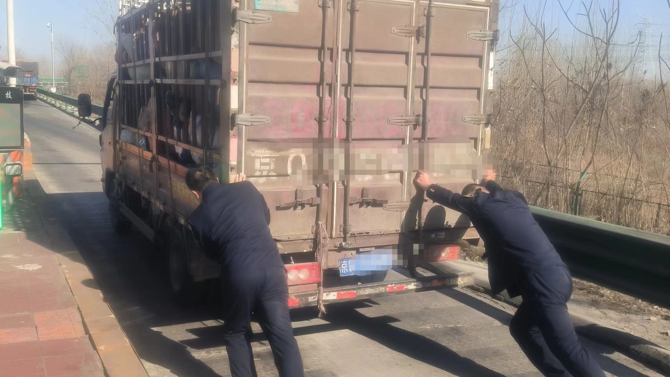 3月3日14时40分,在发卡004车道发卡作业的张亚宁为一辆蓝牌货车发卡后,车辆突然熄火,无法启动。张亚宁立即用对讲机呼叫班长刘星和备岗员王静瑶前来推车。