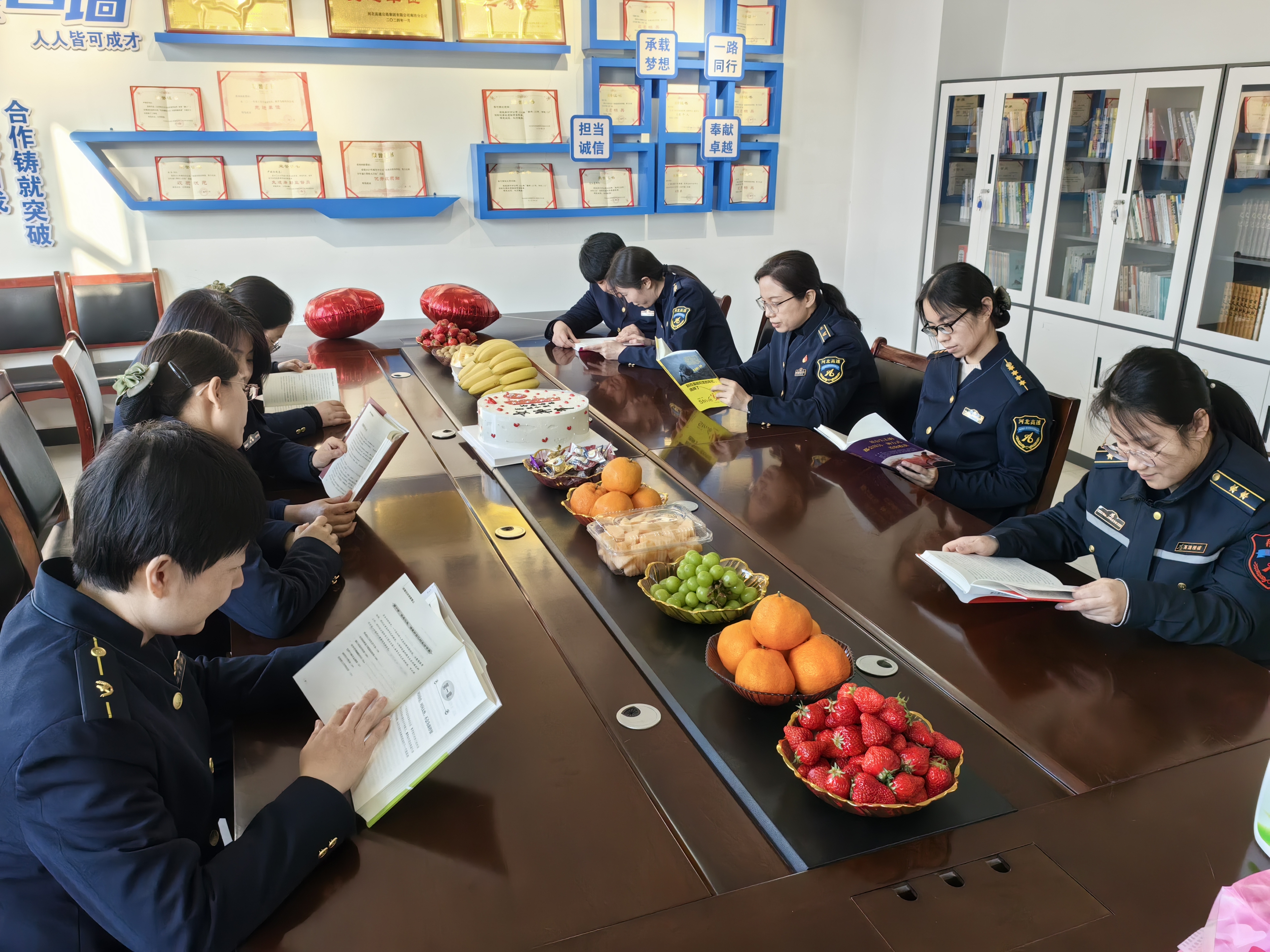 3月6日下午,香河西收费站组织在站女职工开展“书香三八”读书交流活动,活动鼓励女职工读书学习,提高自身素质,做“有智慧、富内涵”的知识女性。女职工们来到会议室,挑选分享阅读感悟,分别就如何提高文化素质,平衡工作家庭生活等方面进行了交流,在面对面的交流碰撞中,相互了解,相互学习,相互促进。