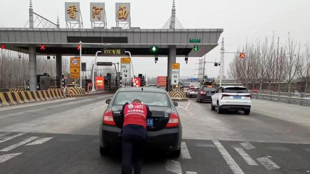 廊坊分公司香河西收费站车辆无法启动 班长秒变“推车侠”