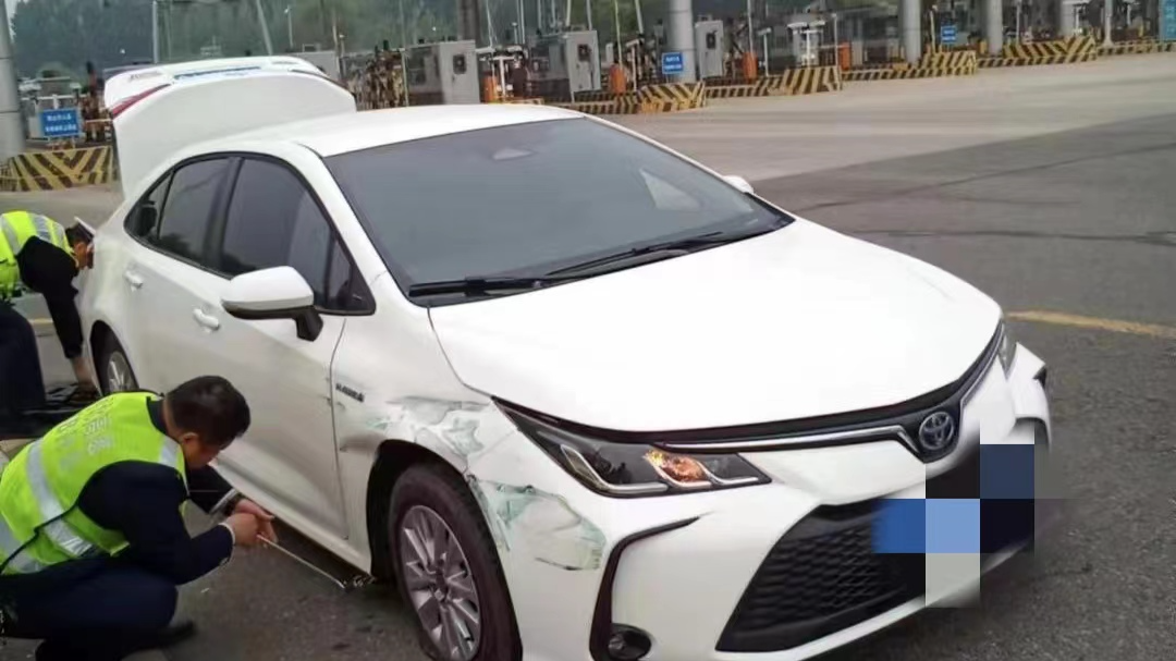 5月7日早晨,一辆白色一型小客车在驶出香河收费站时突然撞到超宽车道的护栏上,车子爆胎停下,正在值勤的当班班长石江波发现这一情况立即上前询问情况。