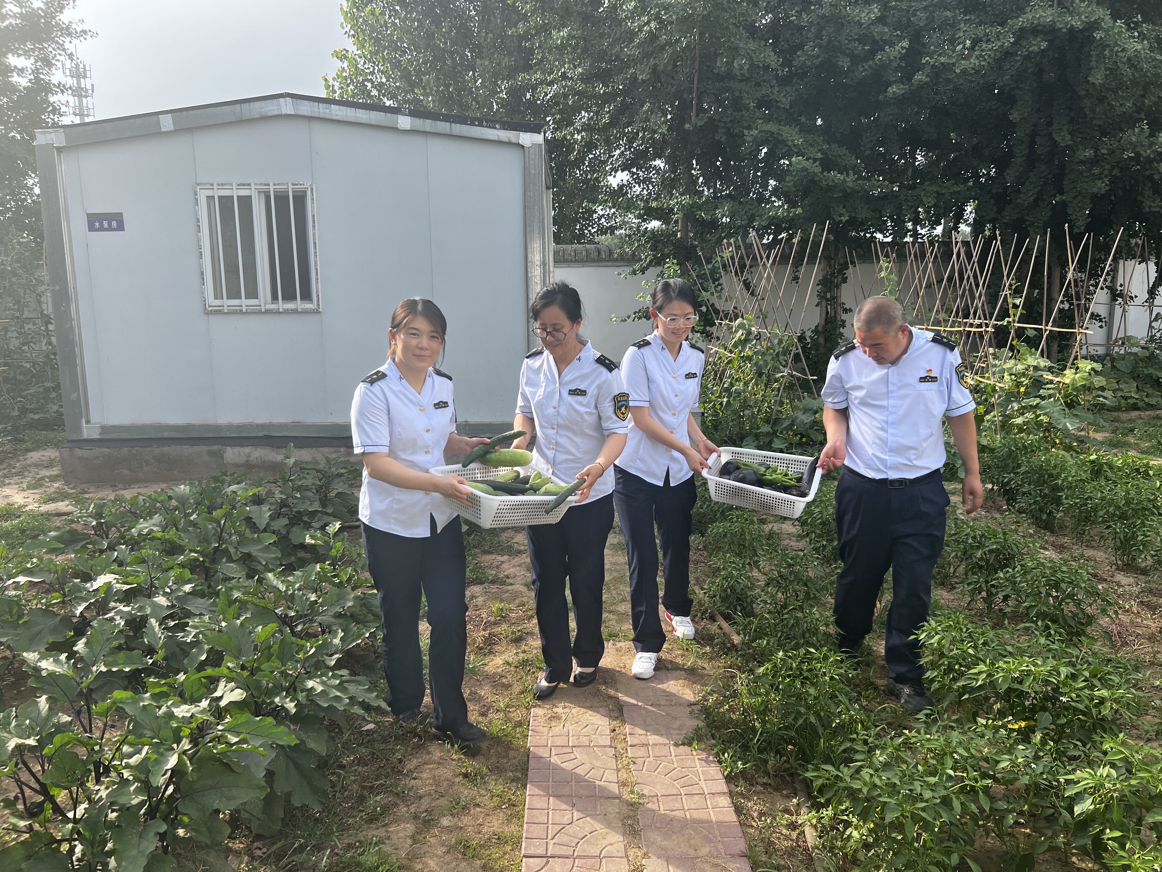 固安东收费站在分公司的号召下,全体干部职工利用业余时间在站区后院开辟了数块菜地,种下了茄子、豆角、辣椒、黄瓜、冬瓜等。