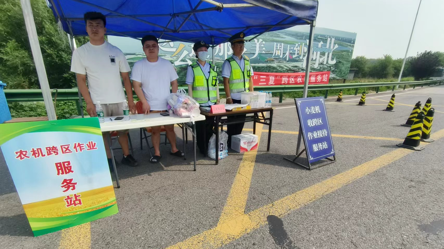 四是便民举措,“服务”到位。通过“三夏”服务台,免费为司乘人员提供矿泉水、应急药品、修车工具等物品和服务;还提前掌握周边乡镇基本路线状况及收割情况,及时准确做好车辆指引。