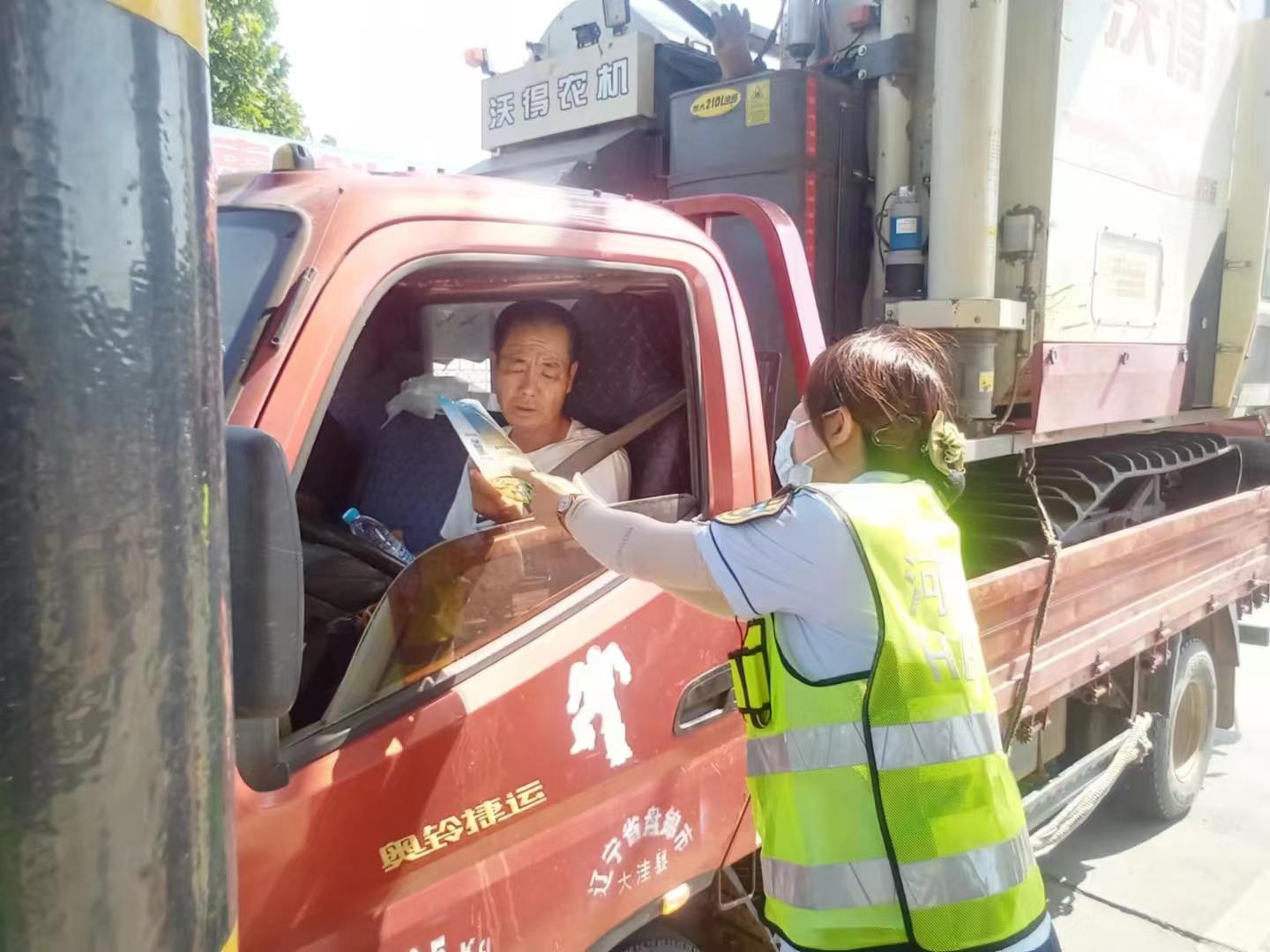 三是政策落地,“宣传”到位。通过设置“三夏”服务台,发放《联合收割机运输车辆免费通行指南》等多种形式加强宣传。尤其重点针对车货总重、外廓尺寸、作业证查验、超限车辆运输证办理、预约规程等政策为司乘做了详细讲解,细心解答群众疑惑,真真正正办实事、优服务、惠民生。