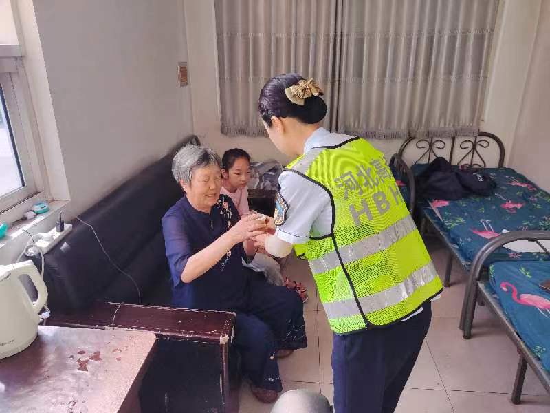 此时天气炎热,段伟周请这一家人到便民服务亭休息,年轻女士一直在屋外联系客车司机,老人和孩子进了屋,疏导员路军军为他们倒水解暑,并耐心劝解老人:“大姨您不要着急,和孩子在这里好好休息,长途客车可能晚点了,在岗亭作业的同事也会帮忙留意的,等车到了第一时间通知您。”10时,去往内蒙古的大巴车终于到来,大姨一家人坐上了回家的车,临出发前不停地对二人表示感谢。