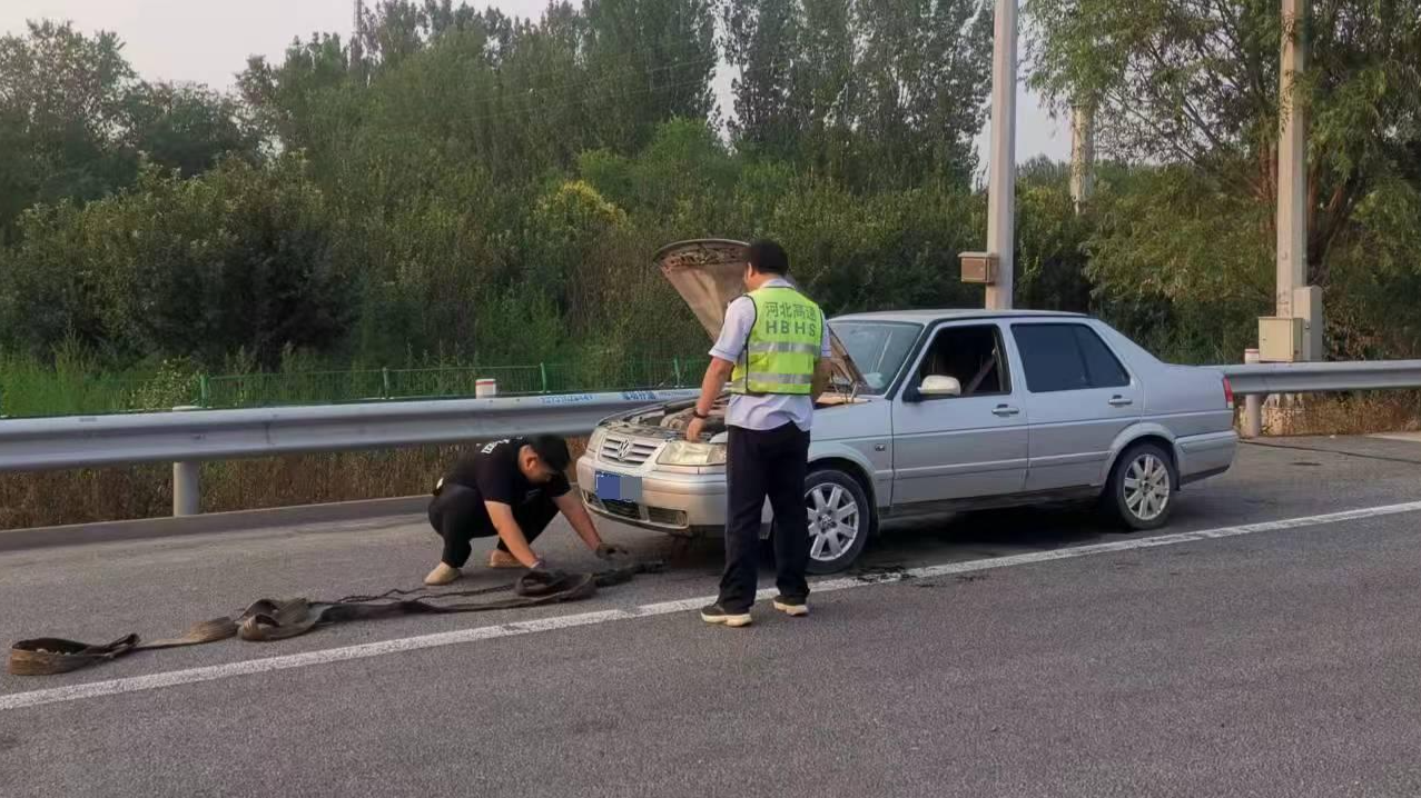 廊坊分公司三河南收费站:轿车抛锚高速口 收费人员速帮忙
