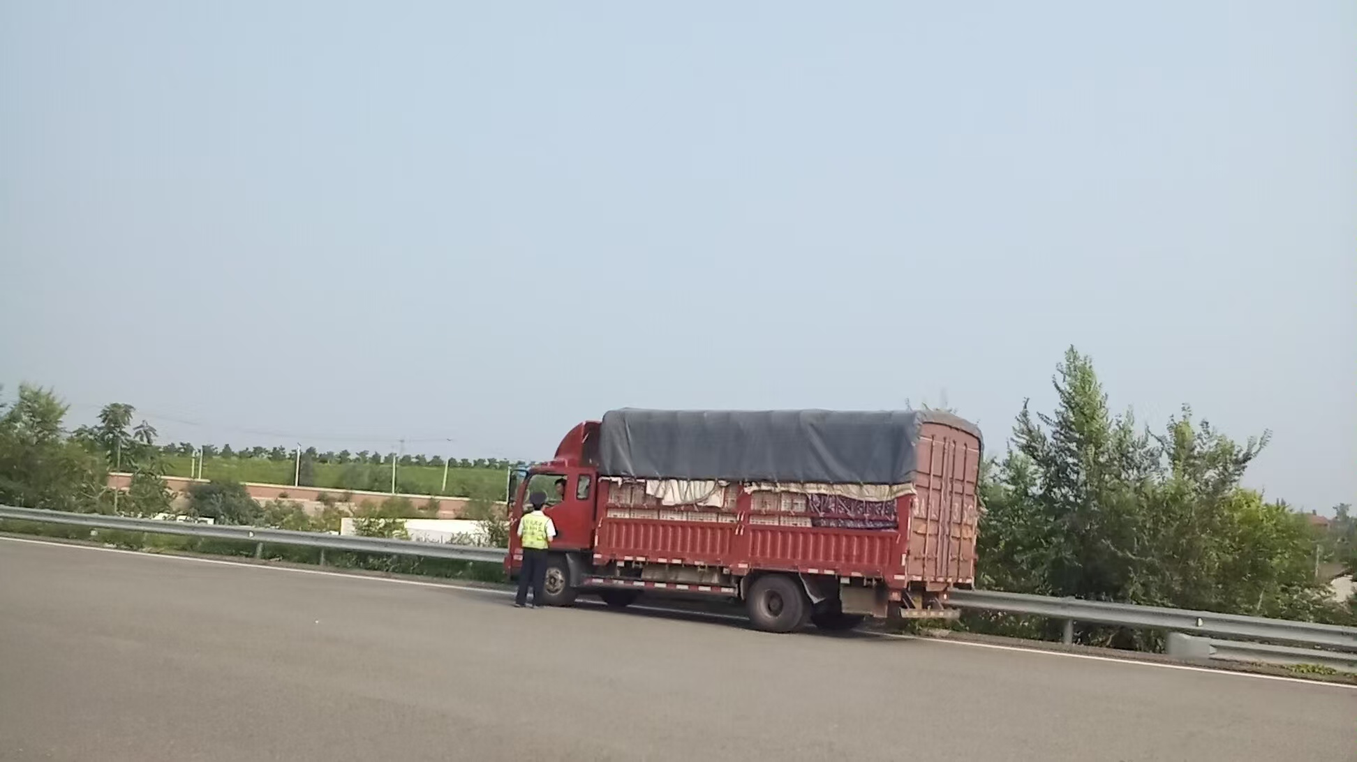 7月28日19点15分,蒋福山收费站收费班长在巡查时发现收费外广场出口处停了一辆红色货车,连忙上前查看。为保证停车安全,班长首先嘱咐司机打开双闪并在车辆后方放置好反光锥桶,随后仔细询问司机所遇困难相关情况。货车司机表示自己是去城里送菜,下了高速以后不知道该怎么走,正在尝试查看导航,但由于年纪太大不会用智能手机,一直没有设置好导航。班长听后问明其所到目的地名称,迅速为司机设置好导航路线,并贴心的向司机描述行进路线及沿途标志性建筑。司机表示感谢后驶离蒋福山收费站。