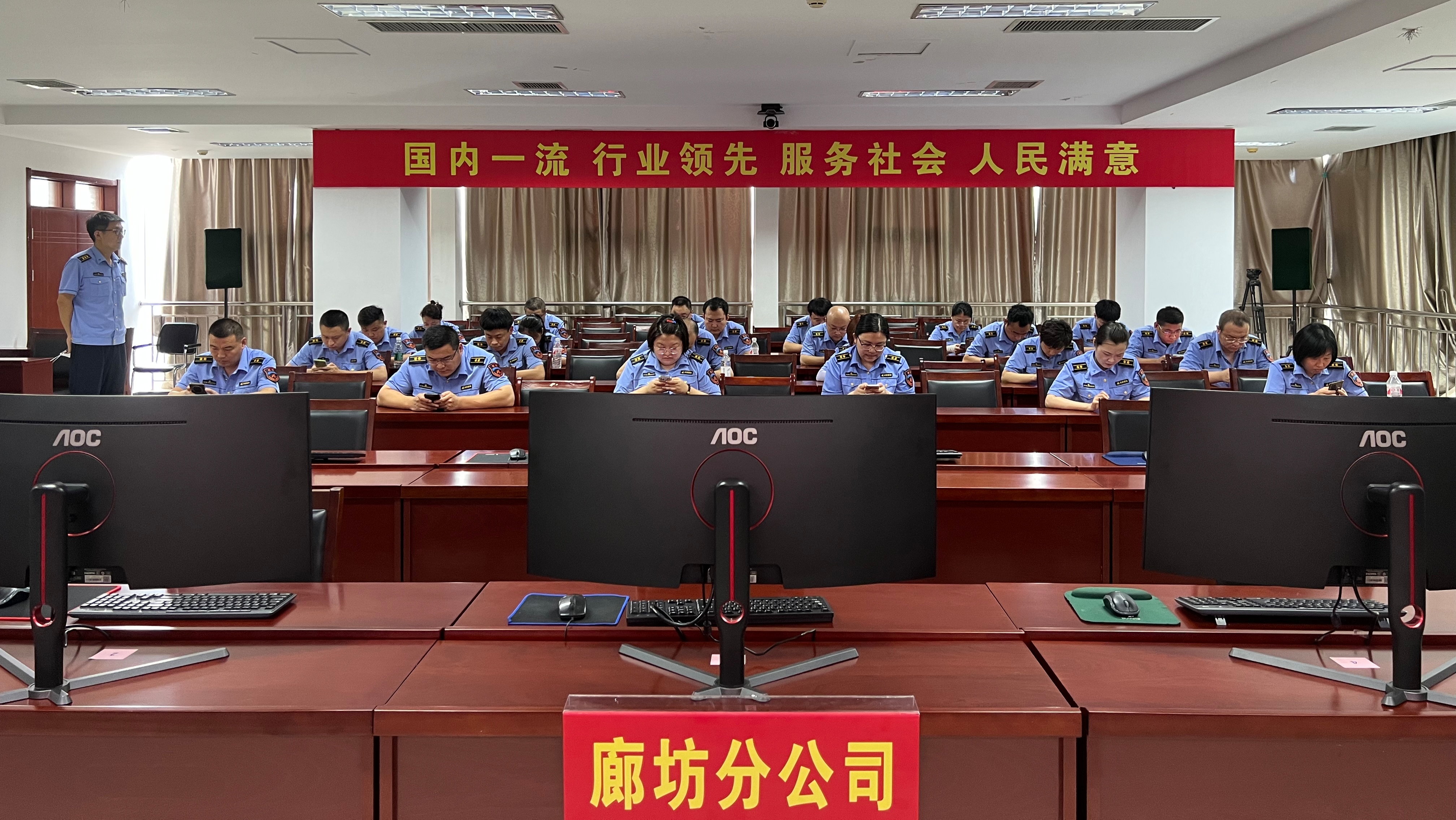 为深入践行集团公司和分公司2024年“创一流、争第一”劳动竞赛暨首届岗位技能比武活动理念,增强稽核队员的创优争先、拼搏奋进意识,廊坊分公司依照既定实施方案,于 8 月 15 日上午,组织开展了 2024 年“创一流、争第一”稽核岗位技能比武活动。分公司总经理于水、副总经理秦志国、副总经理王瑞成亲临活动现场,副总经理秦志国发表动员讲话。