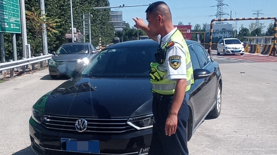 9月2日14时30分,一辆小型客车停靠在距离香河西收费站入口车道20米处,正在收费广场疏导车辆的班长发现该情况后,立即上前询问。