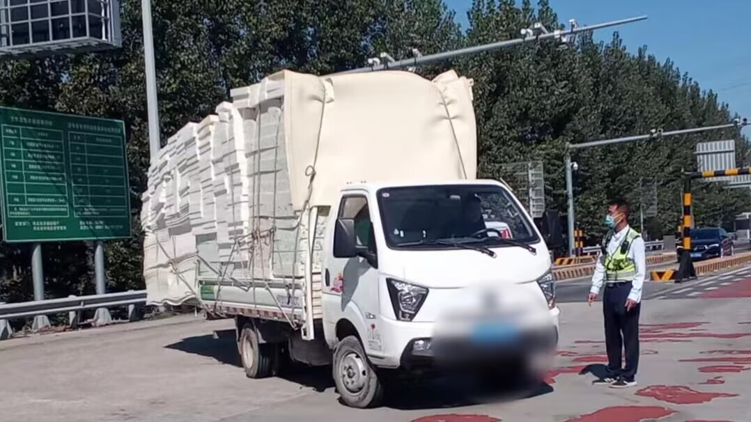 10月3日12时15分,香河西收费站入口广场内,当班班长闫春雨发现一辆装有泡沫板的车辆严重超长,立即将该车拦下,经过班长的观察和测量,该车辆确实超长,并且没有办理超限运输证,按规定不允许行驶高速公路。司机态度强硬,班长向司机耐心讲解了超限运输车的相关规定,最终司机对政策表示理解,在班长的指挥下安全驶离收费站。