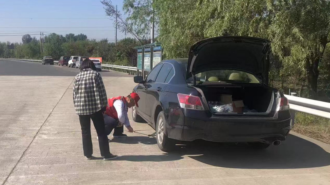 10月3日,廊坊分公司三河南收费站收费班长迅速帮助司乘更换车辆备胎获得司乘好评。