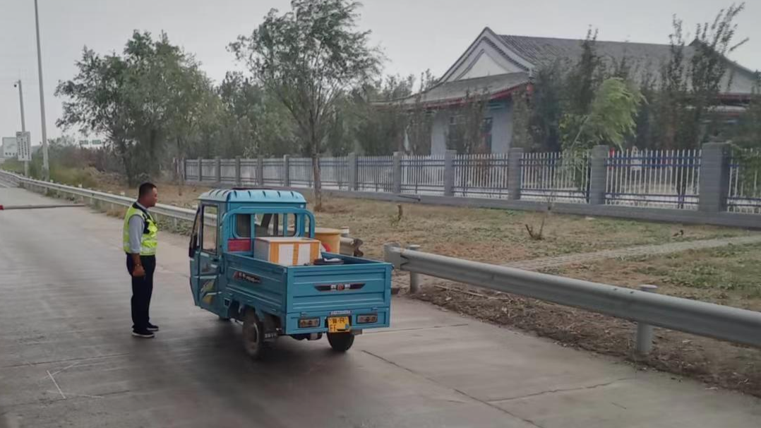 10月14日17时许,一男子骑着电动三轮车驶入三河南收费站。当班收费员立即叫停,并通知班长上前拦截。班长迅速到达现场,将电动三轮车疏导至安全区域。经了解,驾驶人年岁较高,因听村里传言“走高速公路又快又近”,便想“抄近路”前往黄土庄村,却不知高速公路对车辆有严格要求。班长耐心向该男子讲解高速公路机动车辆的行驶政策以及电动车上高速的危险后果,司机表示理解后安全驶离站区。