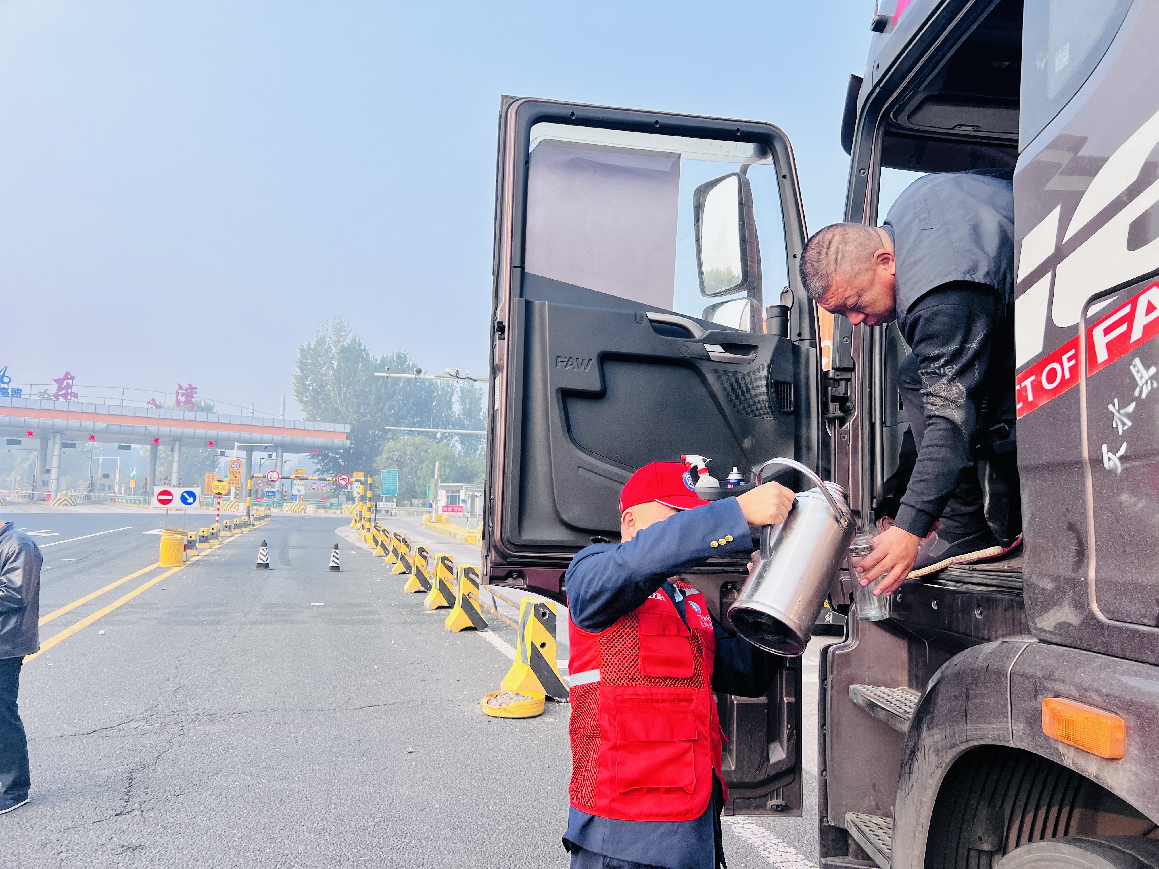 10月25日,廊坊、保定地区持续大雾天气,受浓雾影响,东湾收费站进行交通管制,禁止所有车辆通行。面对因管制滞留在收费站附近的车辆,工作人员迅速行动,在收费广场主动为司乘提供热水、出行路线咨询、交通服务查询,并耐心解释封路原因,缓解司机的不安情绪,竭力做好延伸服务,全力维持站口秩序,确保站口稳定。