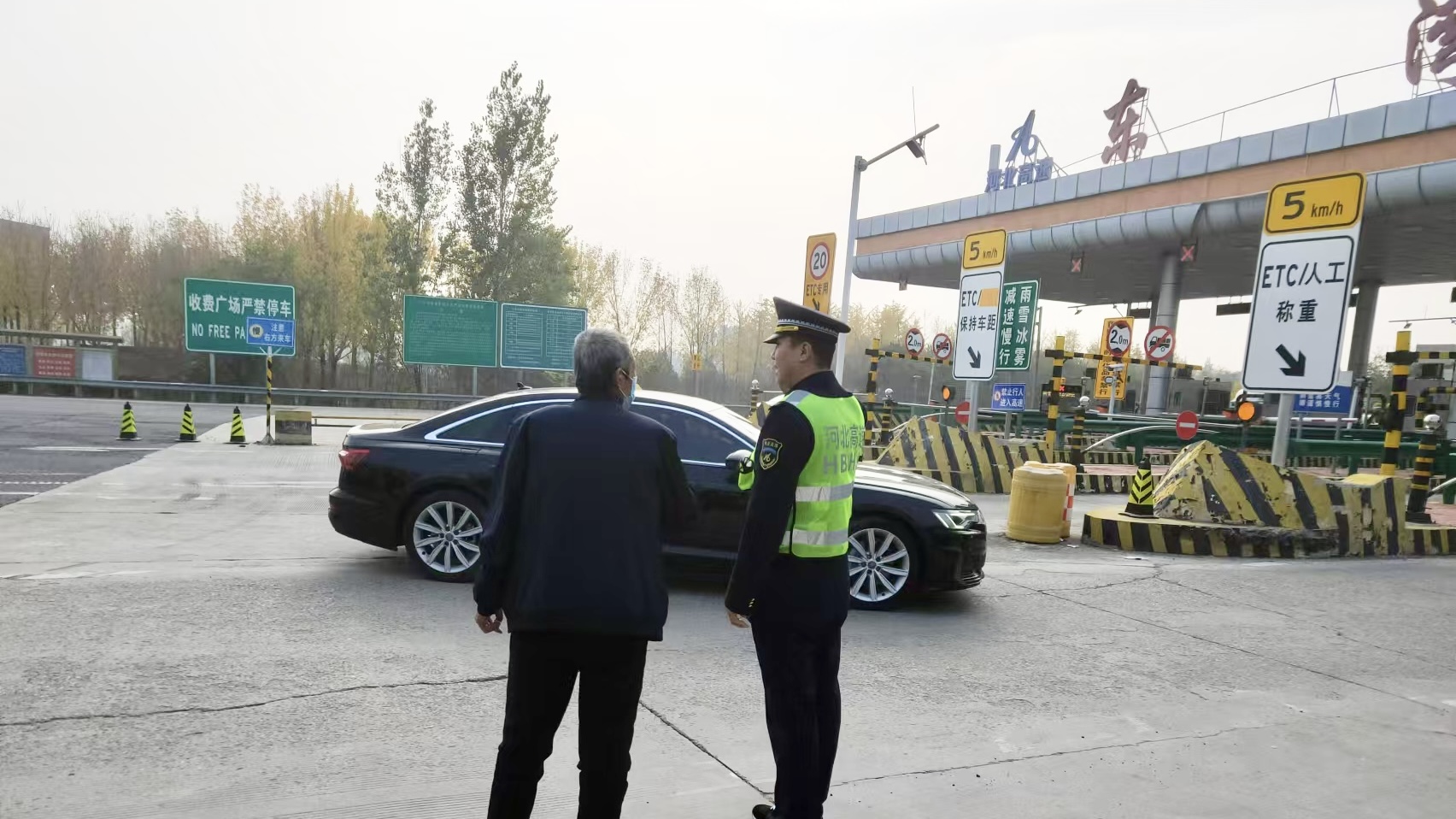 11月1日,东湾收费站黄牌货车禁止通行期间,一位货车司机神色匆匆地走到收费窗口,称自己是外省人,对当地路况不熟悉,且对新手机导航功能不了解,原规划的路线远、费用高,不知怎样切换路线。收费员先让司机处于安全位置并安抚了司机情绪,随后立即呼叫班长处理。