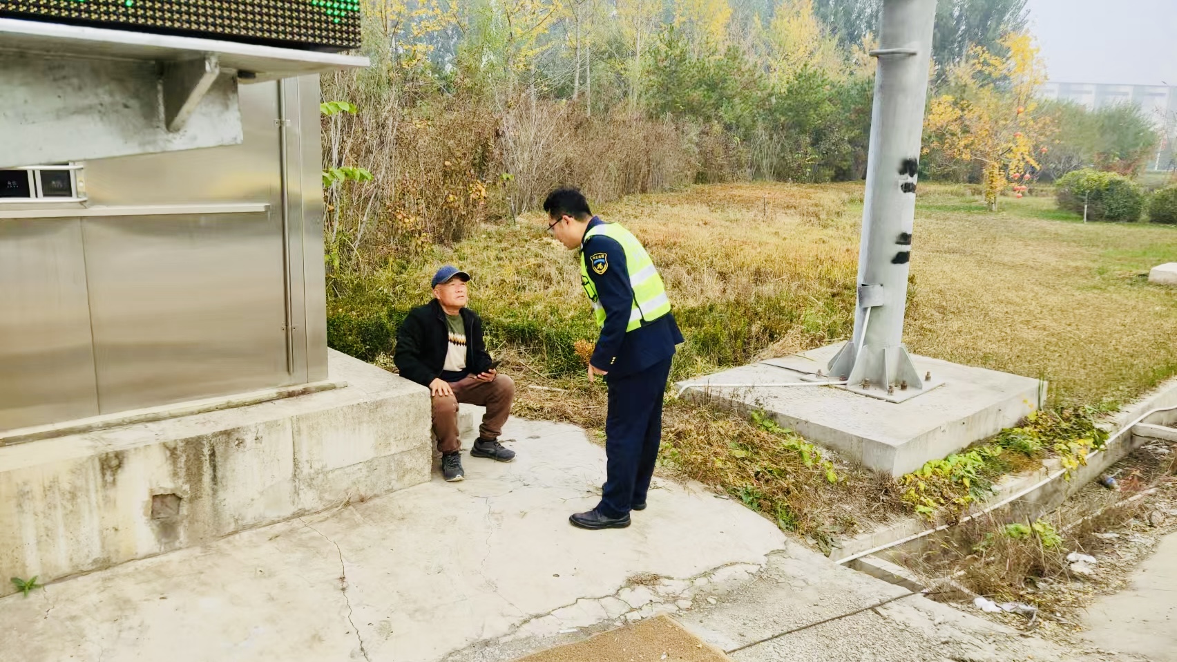 11月27日上午,寒流来袭,气温骤降,北方正式进入真正意义上的冬天。东湾收费站入口广场车辆都在有条不紊地行驶着。当班工作人员在车道日常巡视时,忽然发现一位老人坐在高速入口边,工作人员见状急忙走上前,经询问得知老人因多日没有回家,想顺着高速公路步行回家。工作人员向老人耐心讲了行人上高速的危险,宣传了高速公路相关的法律法规,并告知行人严禁上高速以及强行上高速存在的危险性和安全隐患。经过收费站工作人员耐心解释,老人安全离开了收费站,从下道向着家的方向走去。