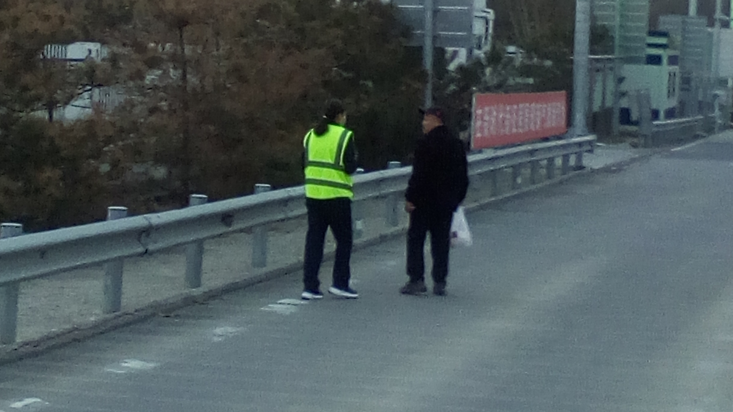 12月4日,燕郊西收费站外广场处一位老人欲步行上高速。此时,车流量较大,存在安全隐患,当班班长快速将老人带至安全地带。经询问得知,老人是想去高速路边捡废品。当班班长告知老人,行人和非机动车辆不能上高速,并耐心为他讲解了行人上高速存在的安全隐患。老人表示理解后,被安全带离。